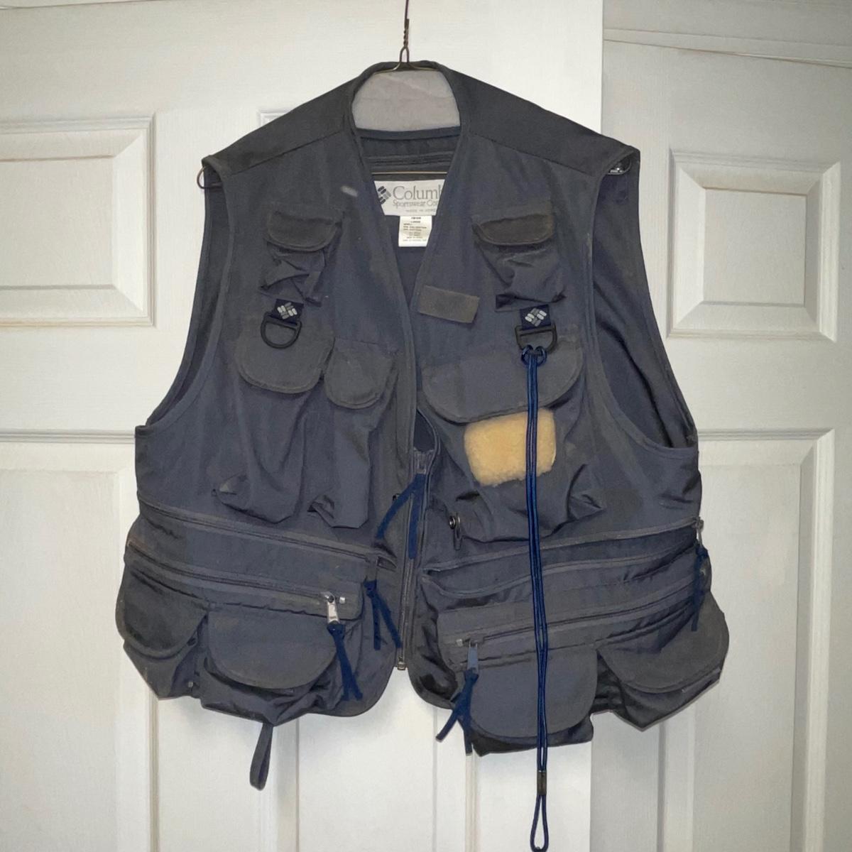 S1928 Columbia Fly Fishing Vest No visible, tears or holes, all pockets seem to be functioning. Size large.
