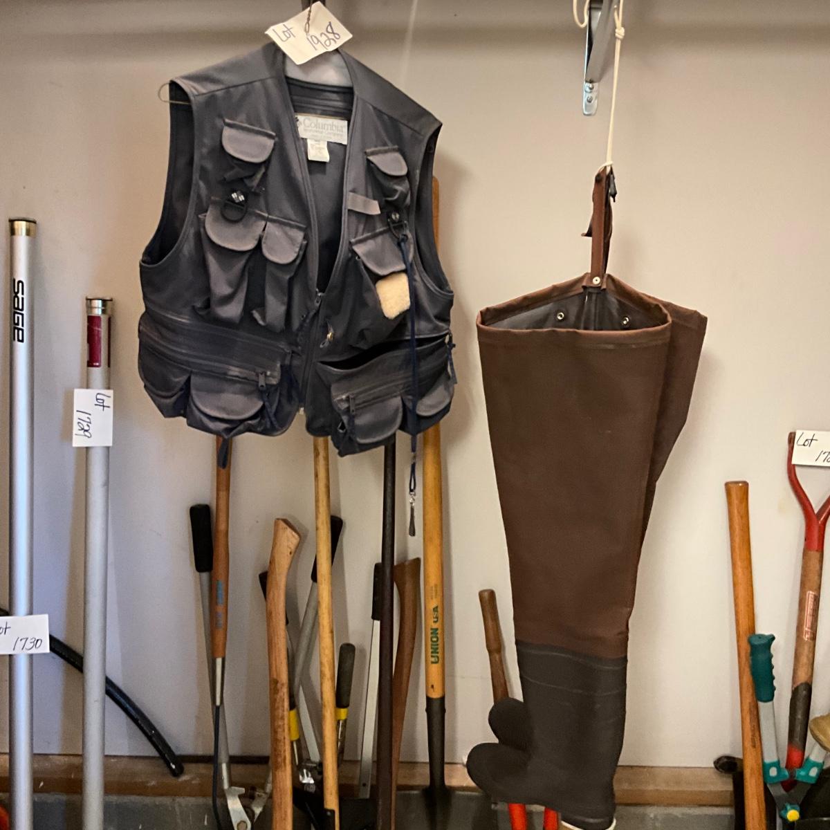 S1928 Columbia Fly Fishing Vest with Red Ball Waders