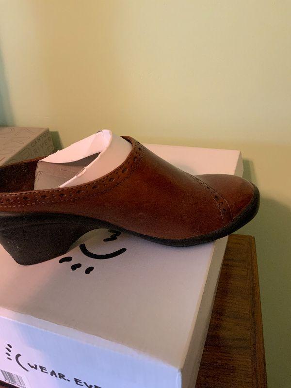Women's Brown Leather Clog Size 6. Please see all pictures for exact contents of the lot, condition of the items, and if measurements if taken. Thank you for looking and have fun bidding.