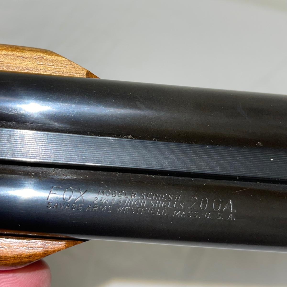Fox Savage 20 Gauge Double Barrel Shotgun. Model B Series H. 2-3/4” & 3” shells. Excellent shape with minor marks on buttstock. Serial #D427005.
