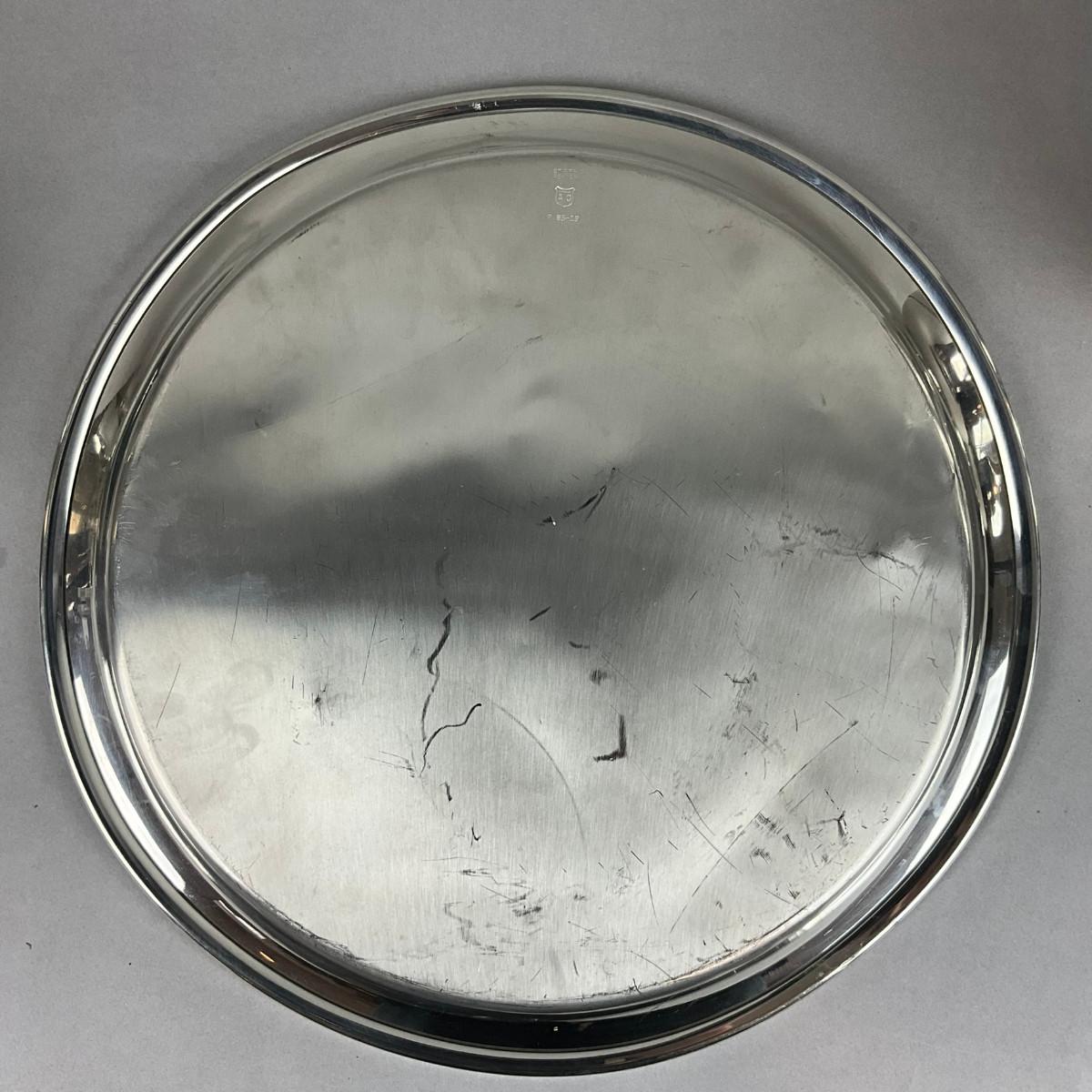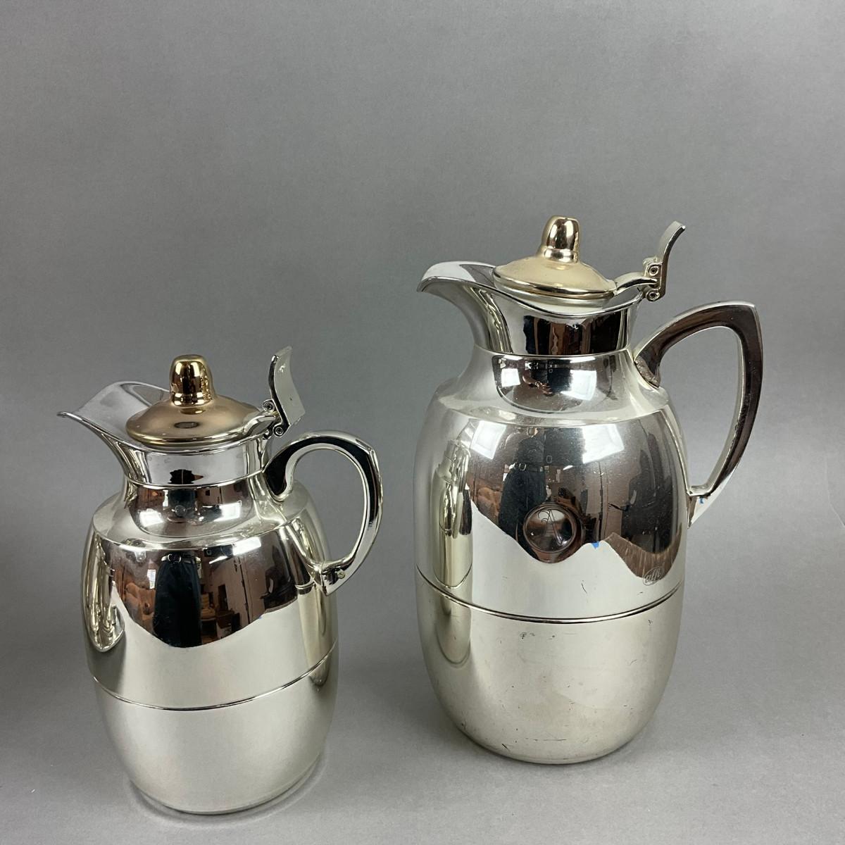 S352 Silverplate Assorted Pewter Cups on Tray with Matching Hot/Cold Carafes