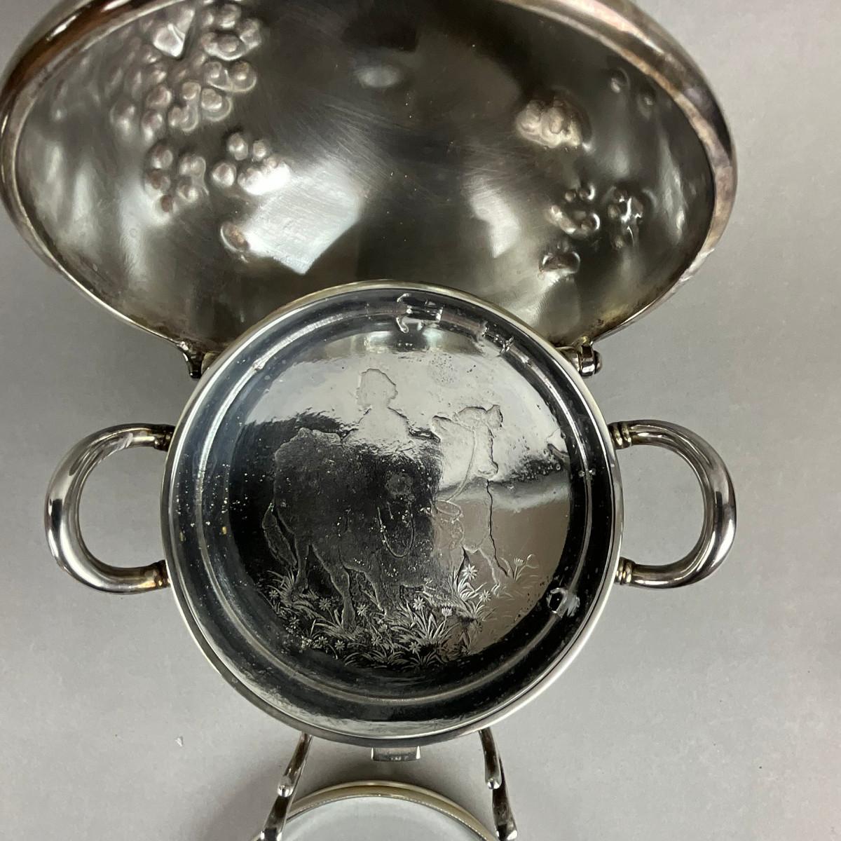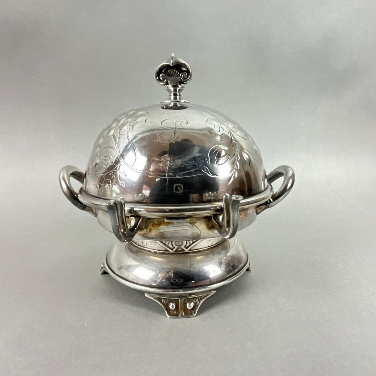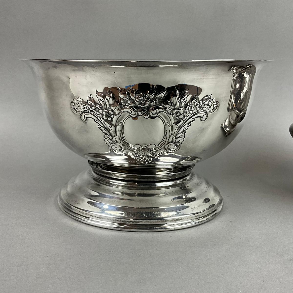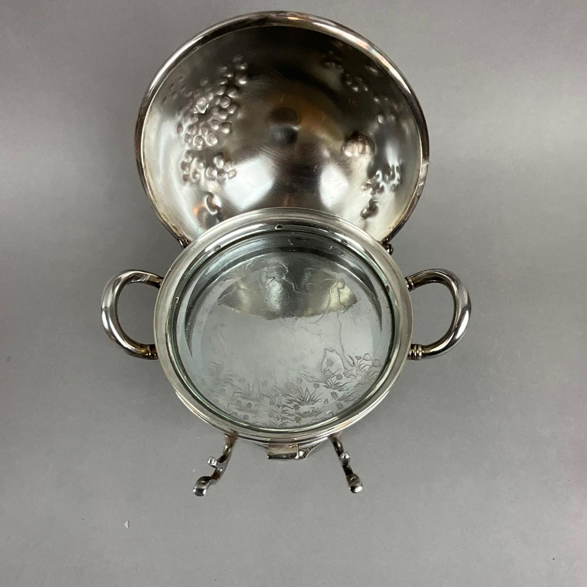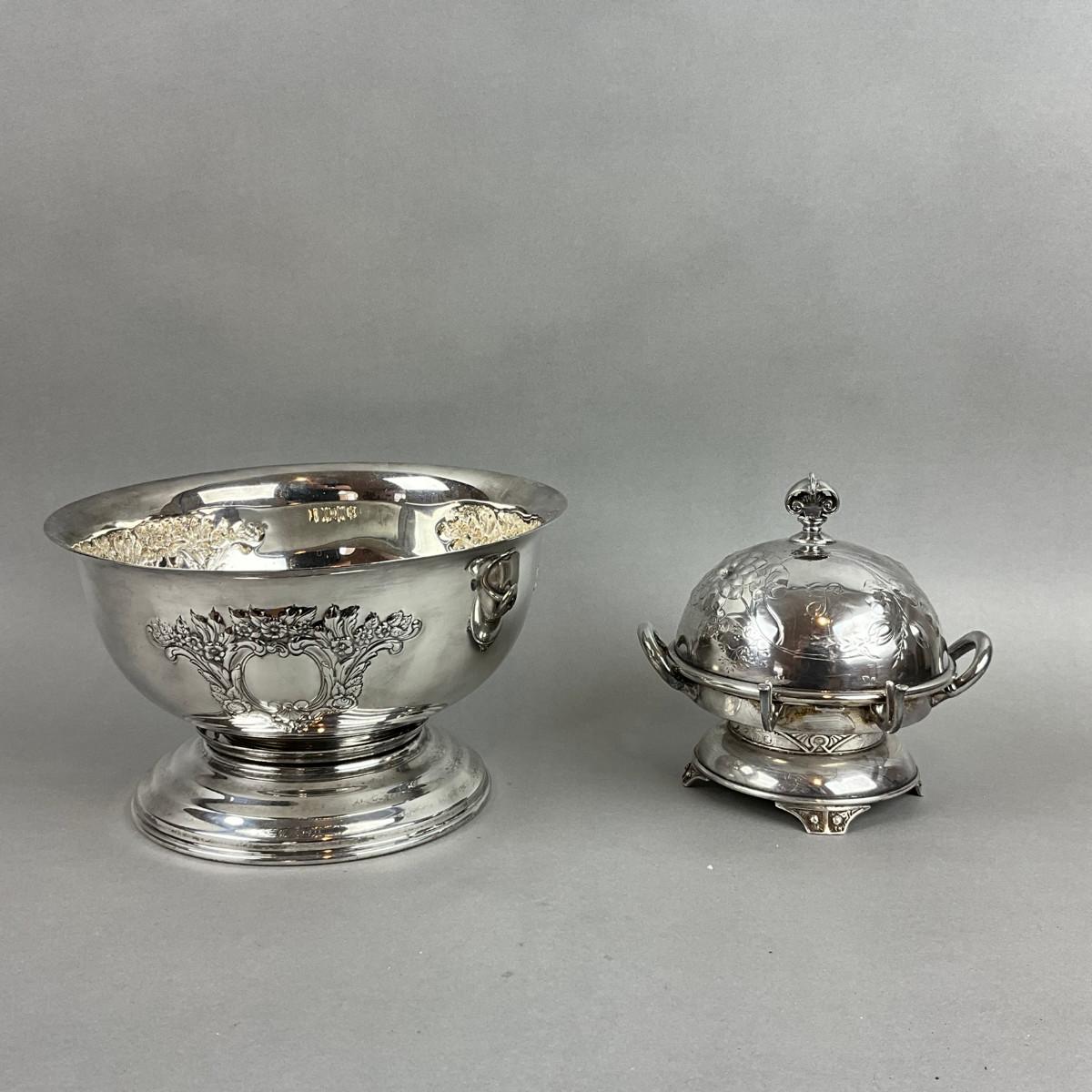 S353 Antique Silver Plated Punch Bowl & WIlcox Silver Plated Caviar / Butter Serving Dish
