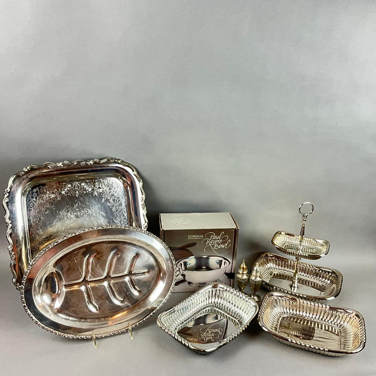 S364 Large Lot of Vintage Silverplate Serving Pieces & Trays (Gorham, Paul Revere Bowl, Mixed Makers)