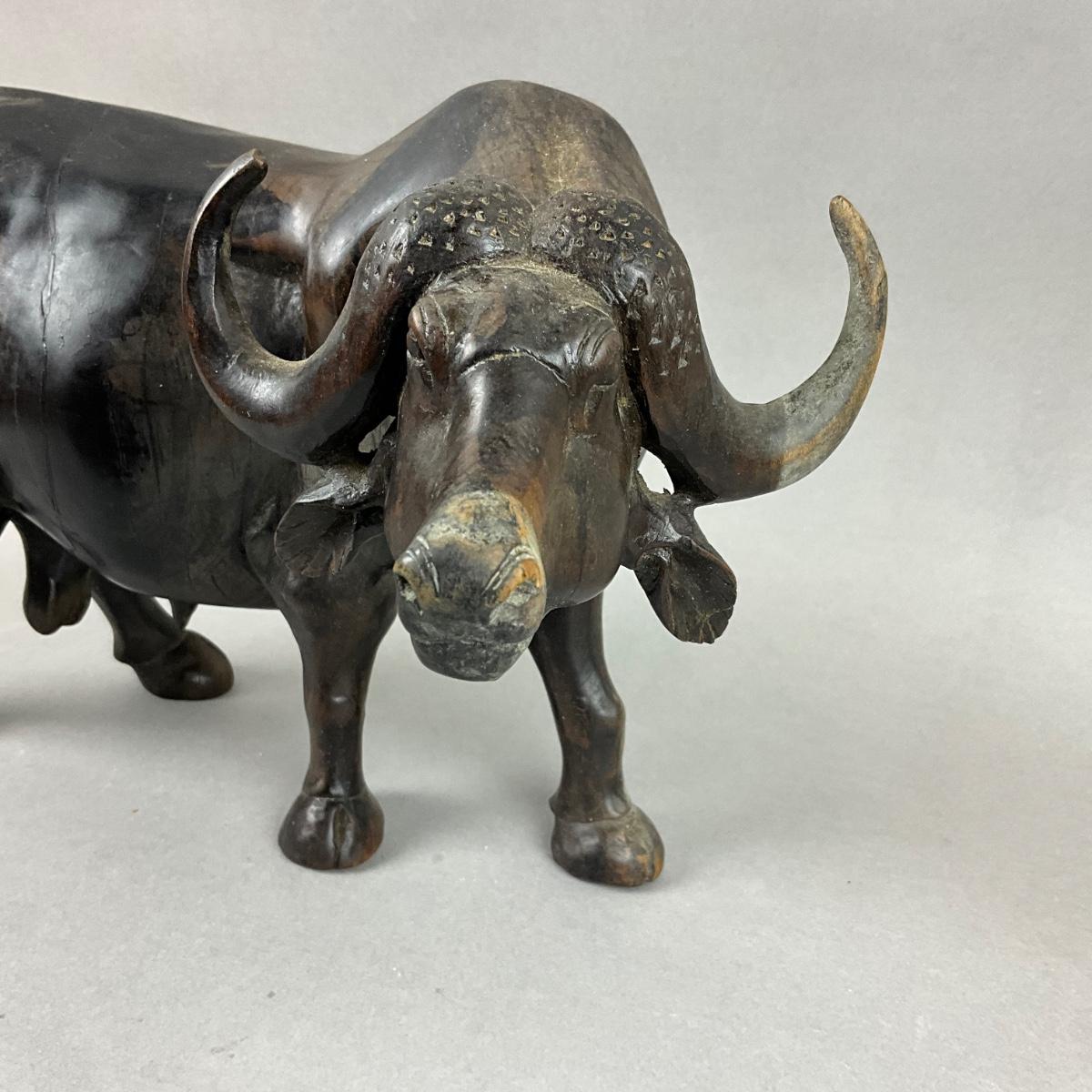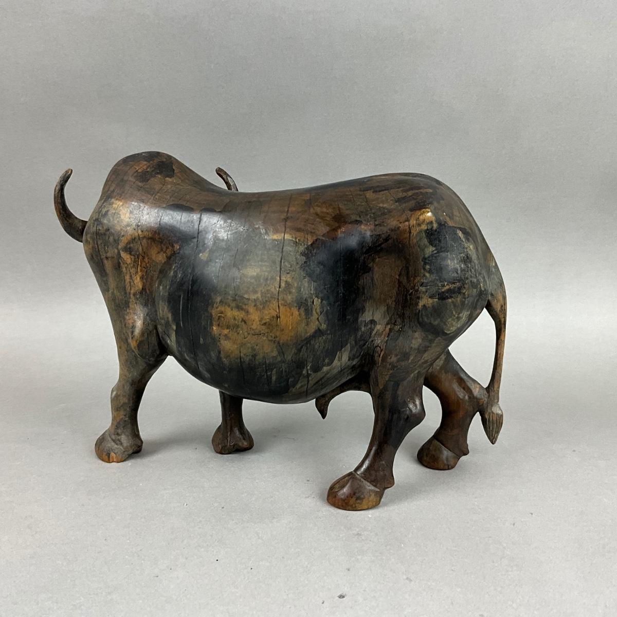 S398 Vintage Carved Ebony Bull Signed J, MWANZA