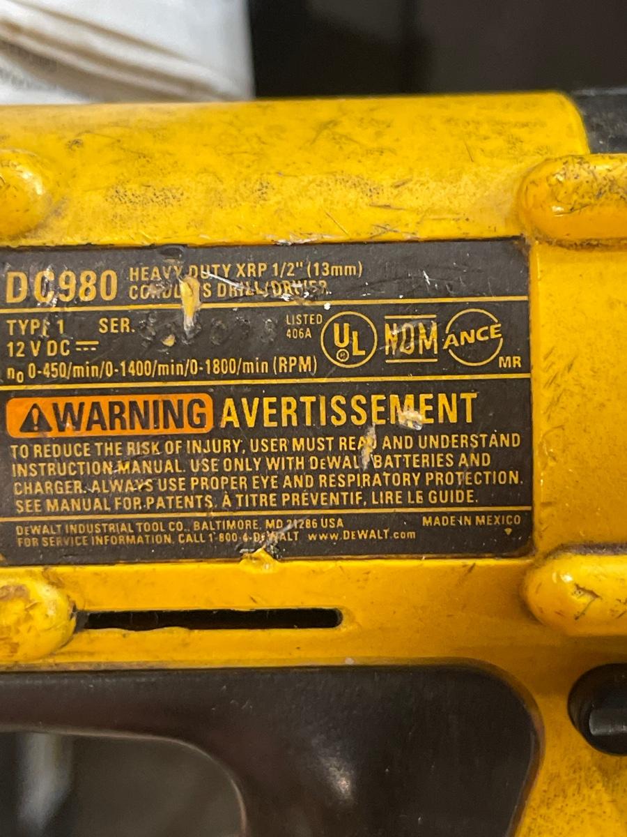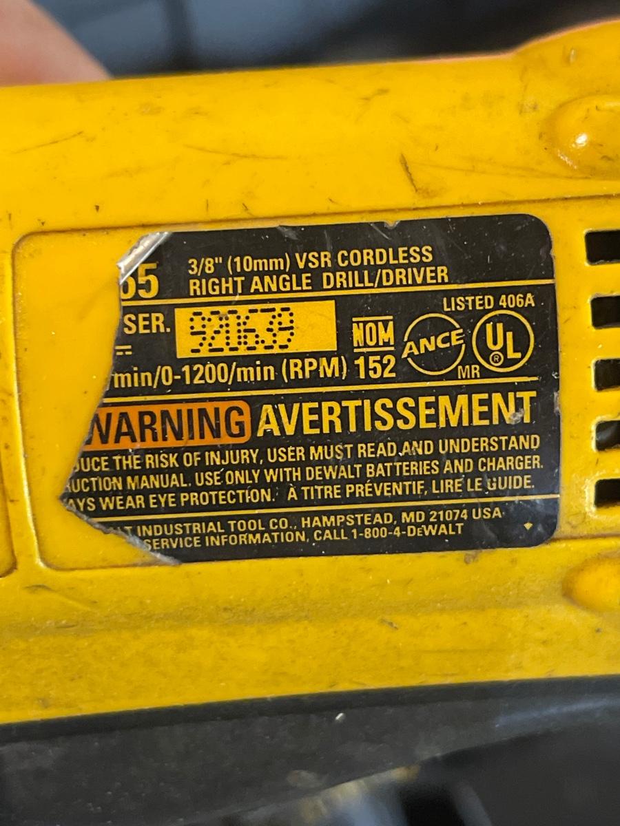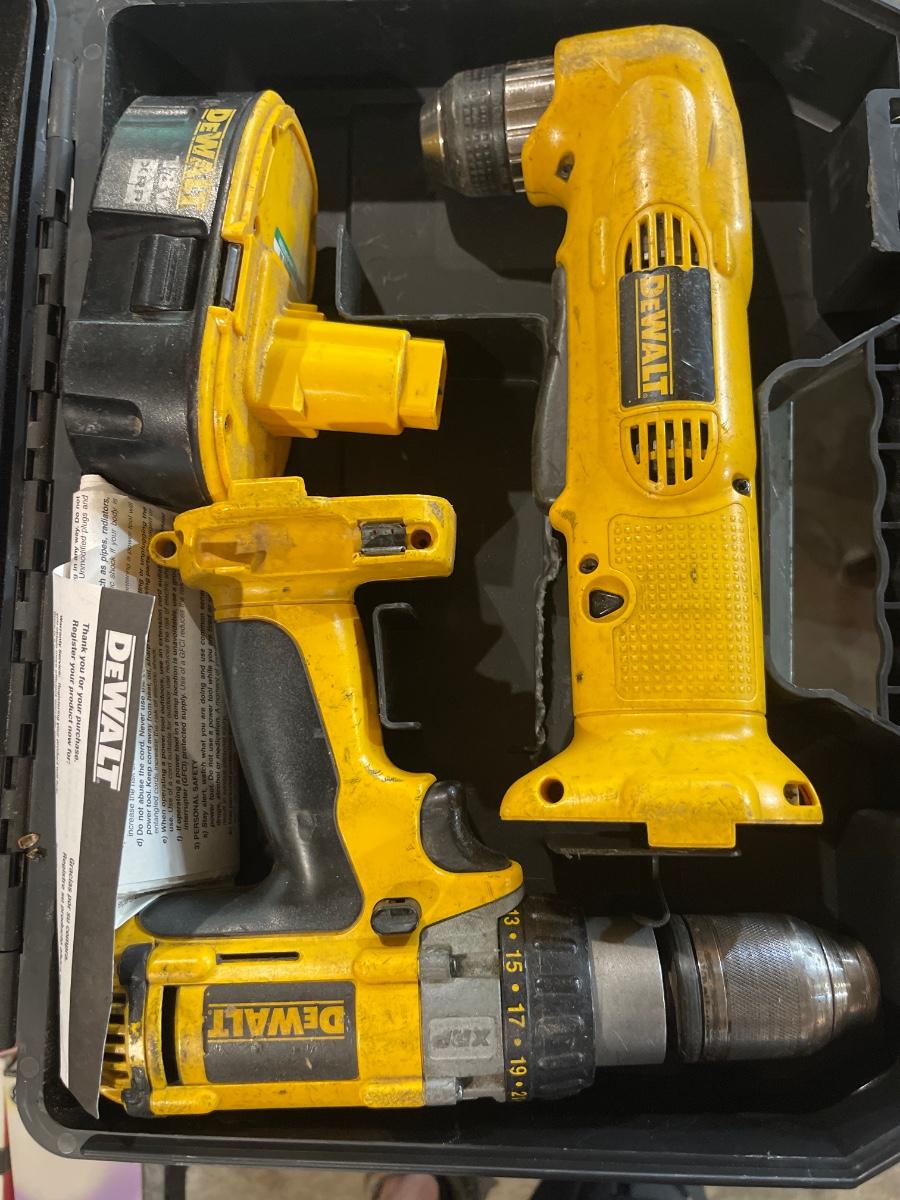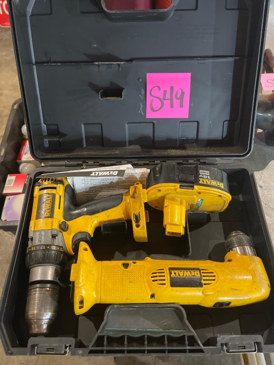 S49-Dewalt right angle drill/driver, Heavy duty XRP half-inch cordless drill and battery