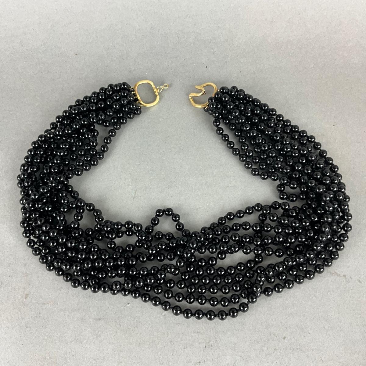S679 Beautiful Multi Strand Onyx Necklace with 14k Clasp