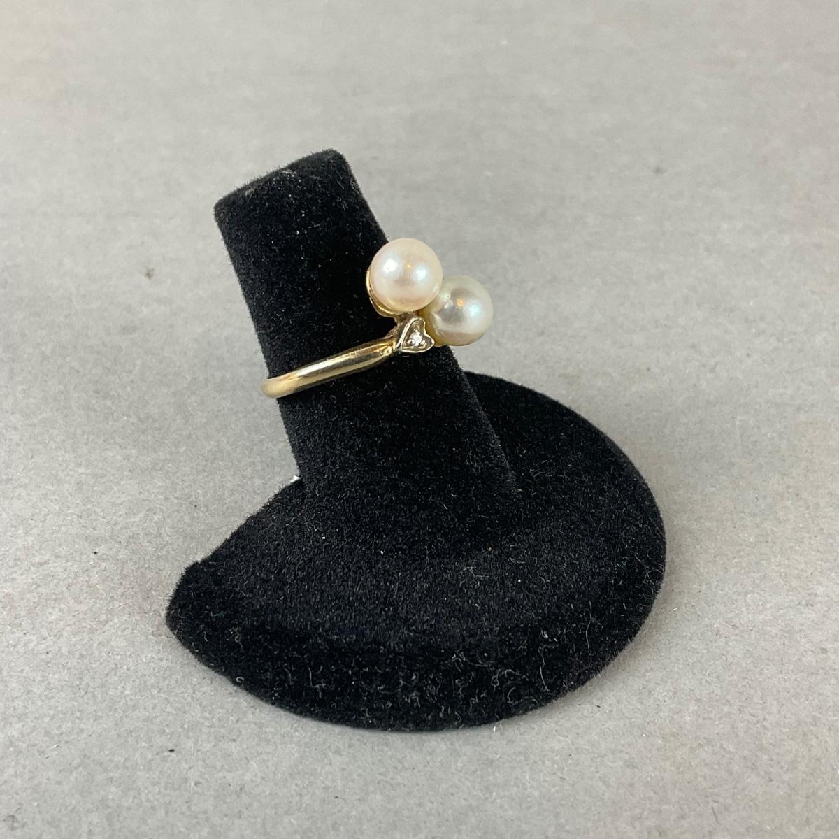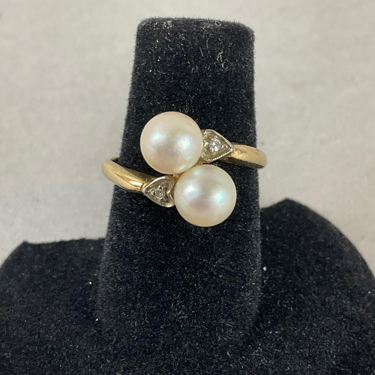 S694 14k Yellow Gold Pearl and Diamond Ladies Ring