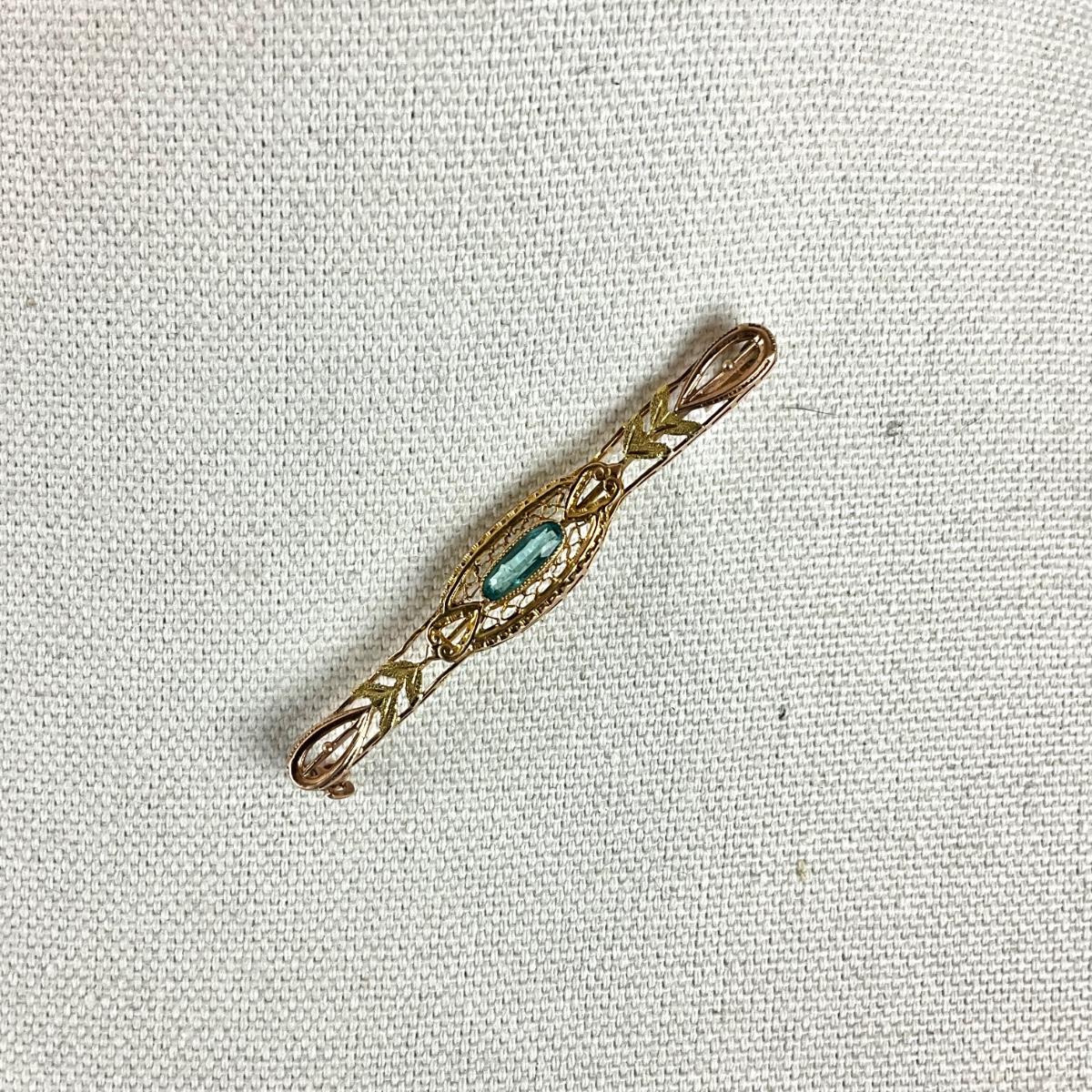 Stamped 10k faceted cut oval aqua beaded bezel set and leaf design