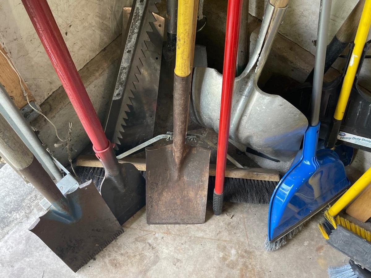 S80-brooms, various shovels, scraper, squeegee, etc.