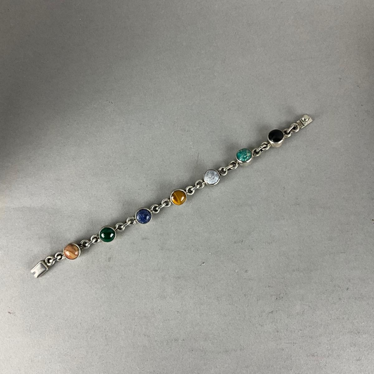 S814 Heavy Sterling Silver Semi Precious Stone Link Bracelet