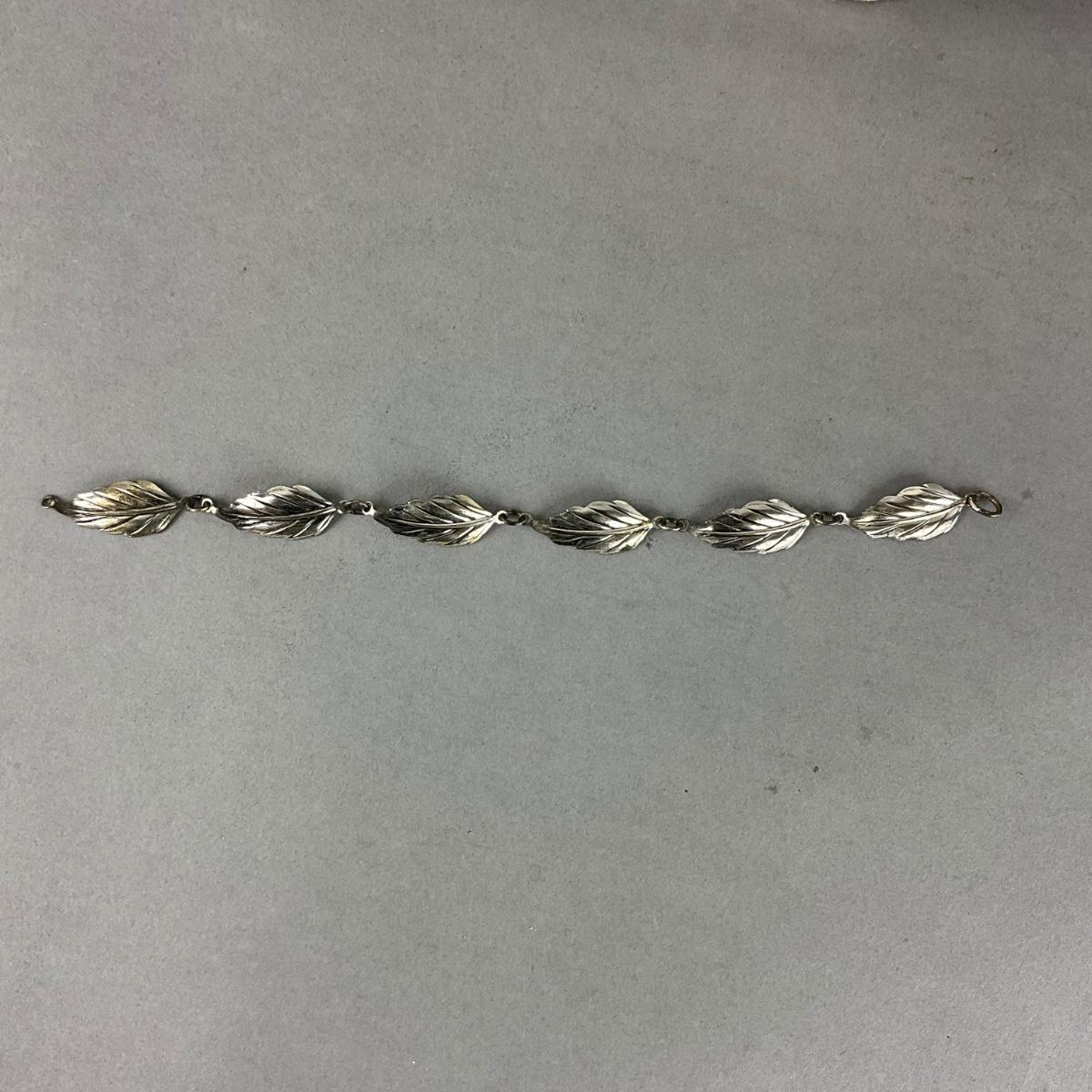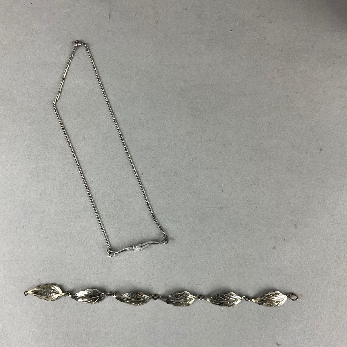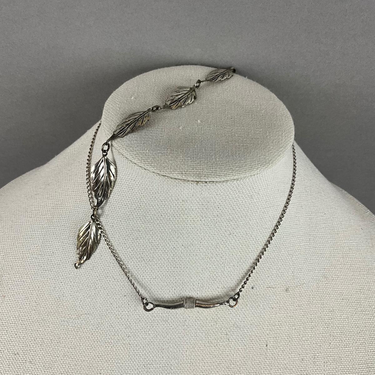 S816 Vintage Sterling Silver Leaf Bracelet and Bar Necklace