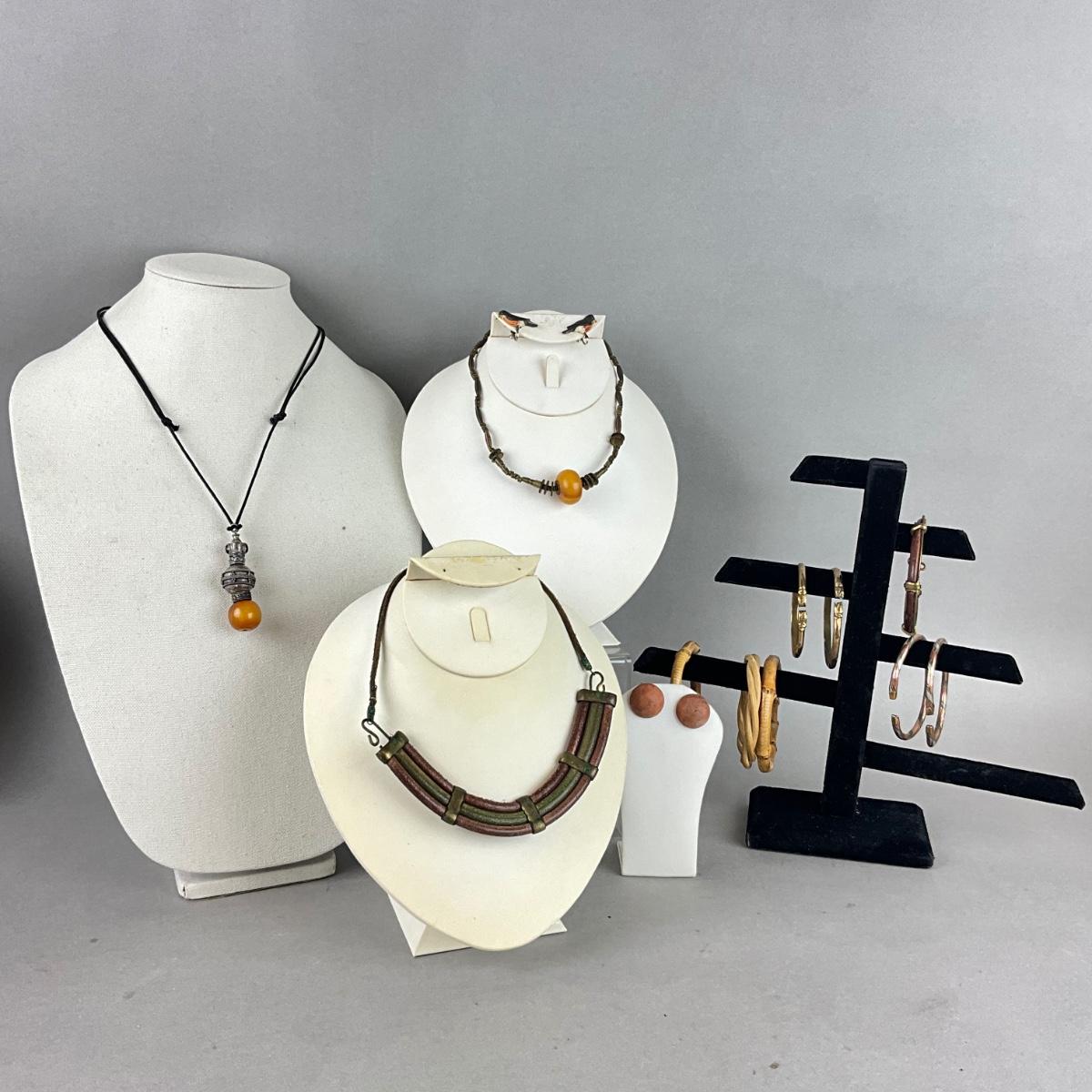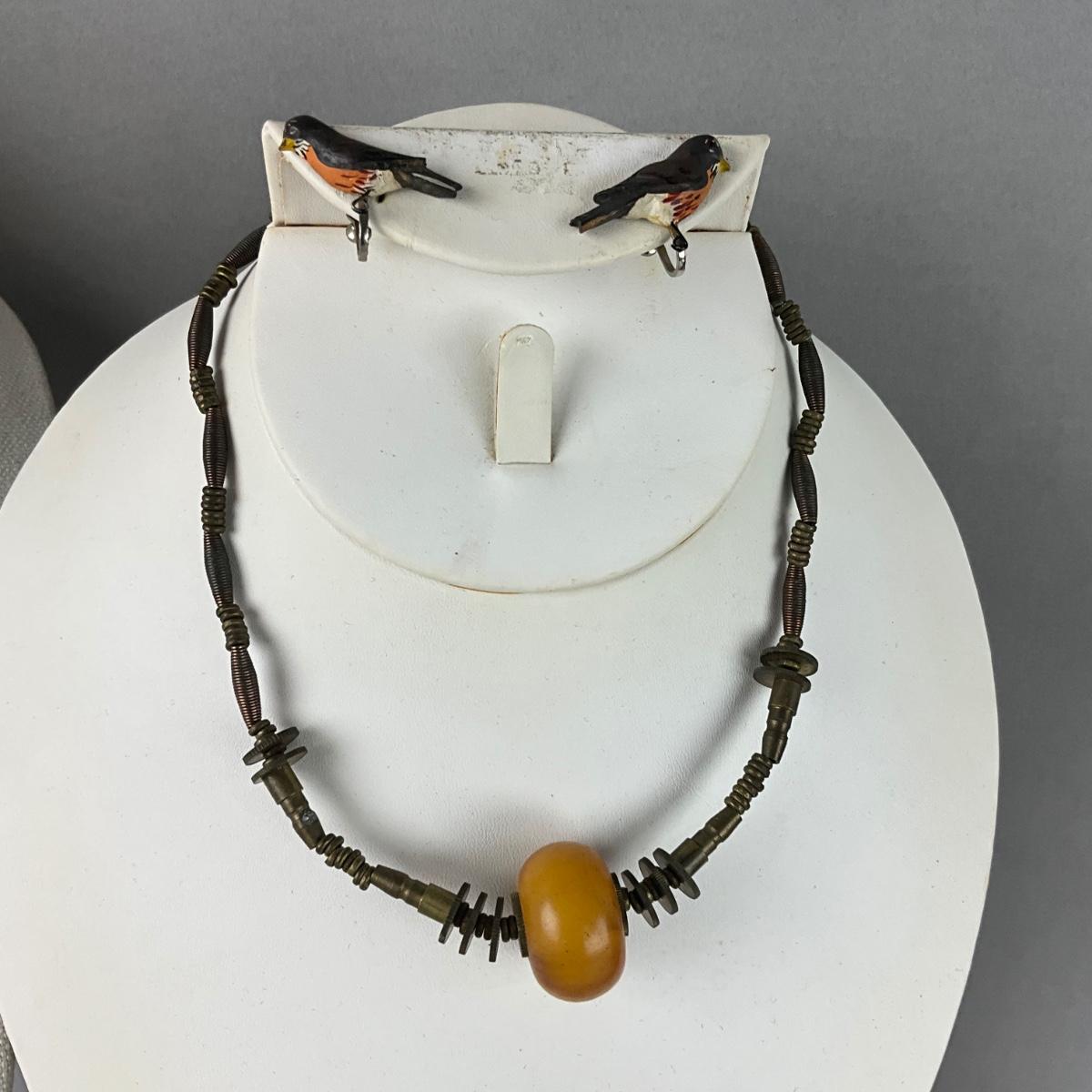 S829 Lot of Amber , Brass, Copper Jewelry Lot