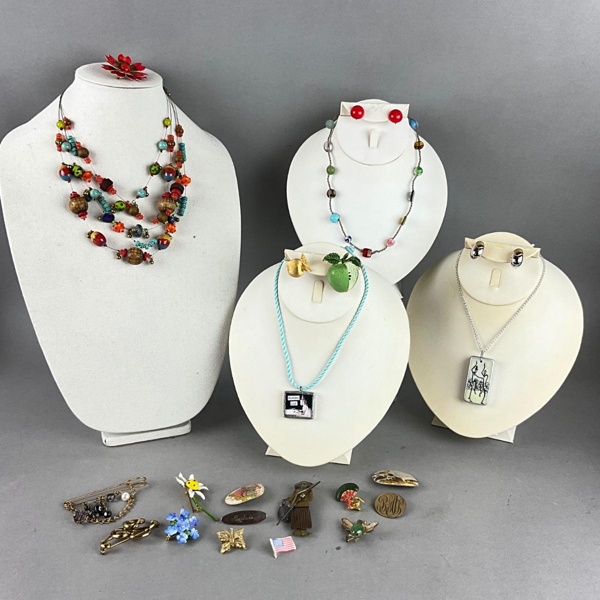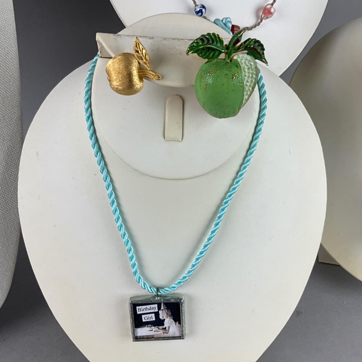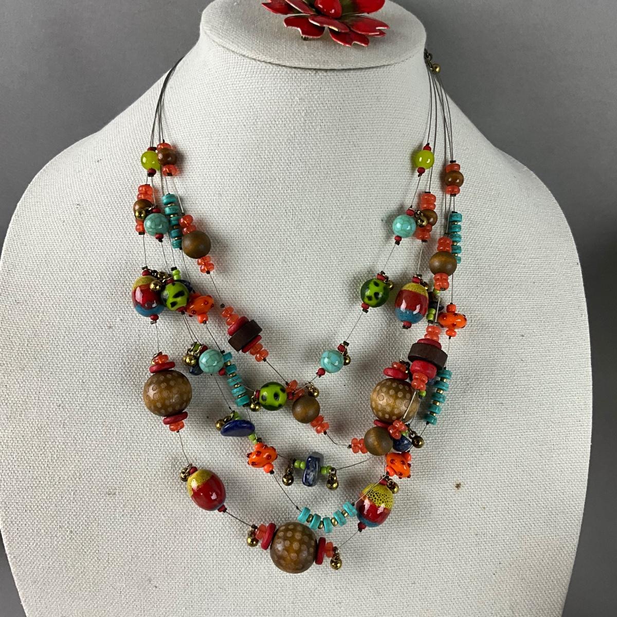 S836 Multi colored Costume Jewelry Necklace and Brooch Lot