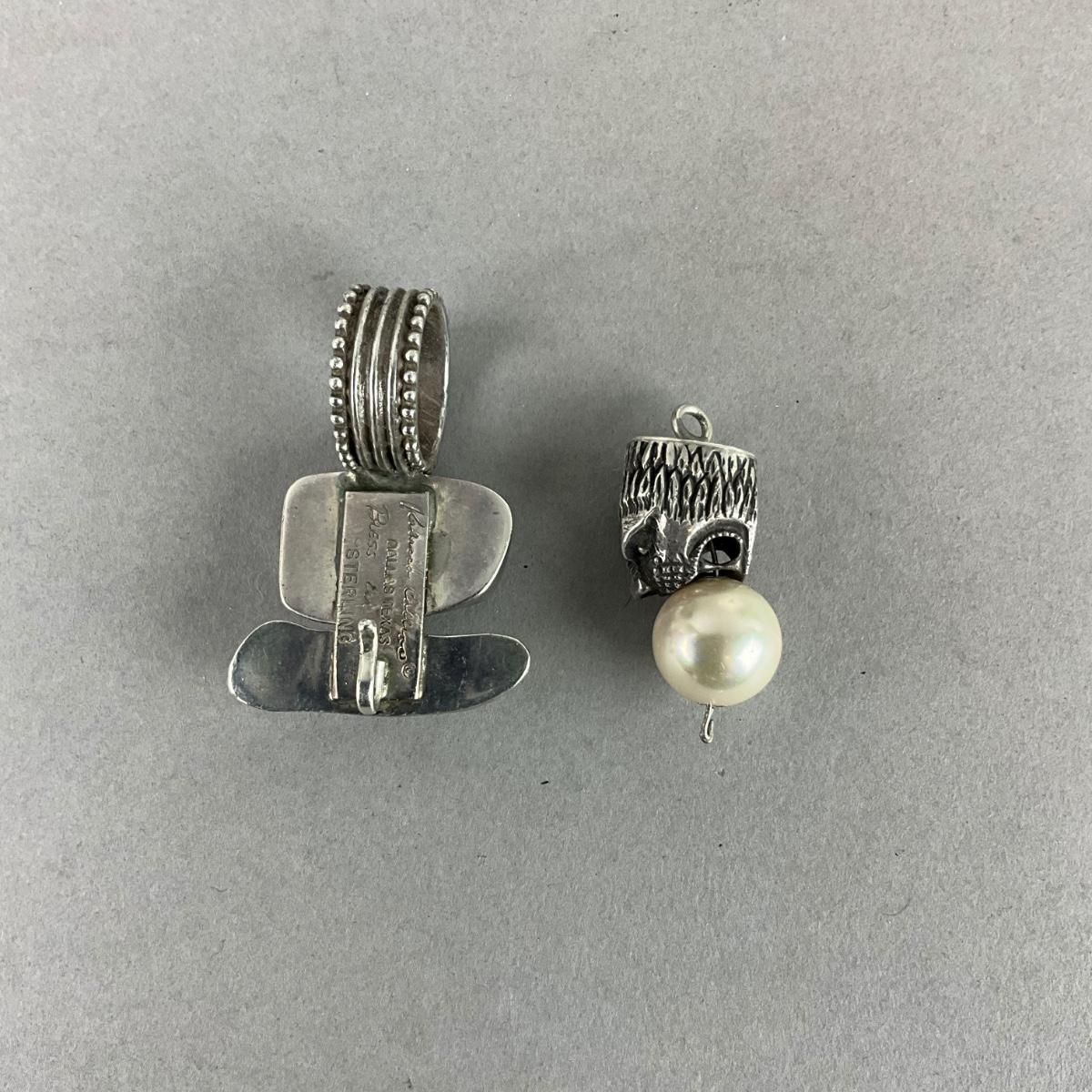 with lion design and faux round pearl , bezel set aquamarine and mother of pearl