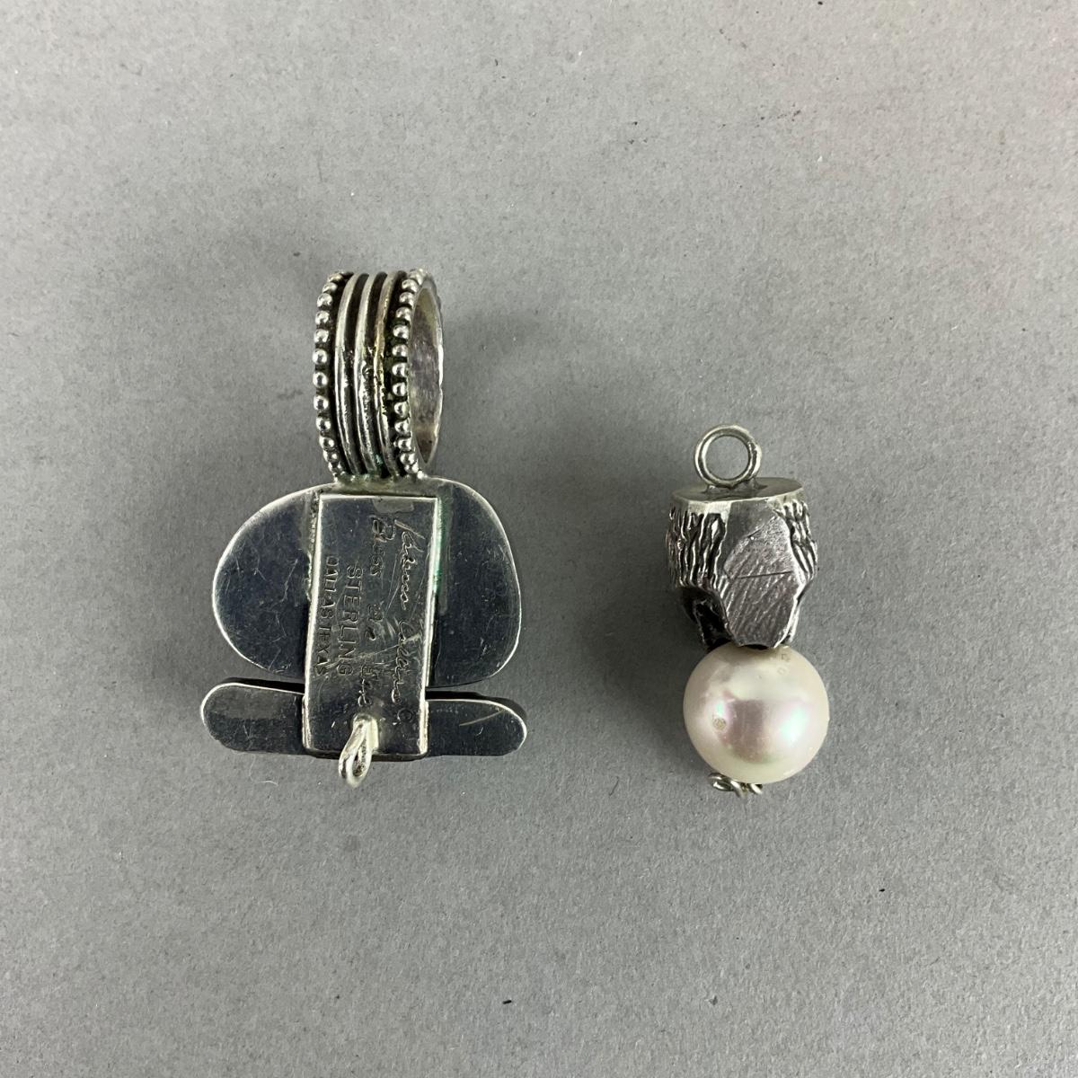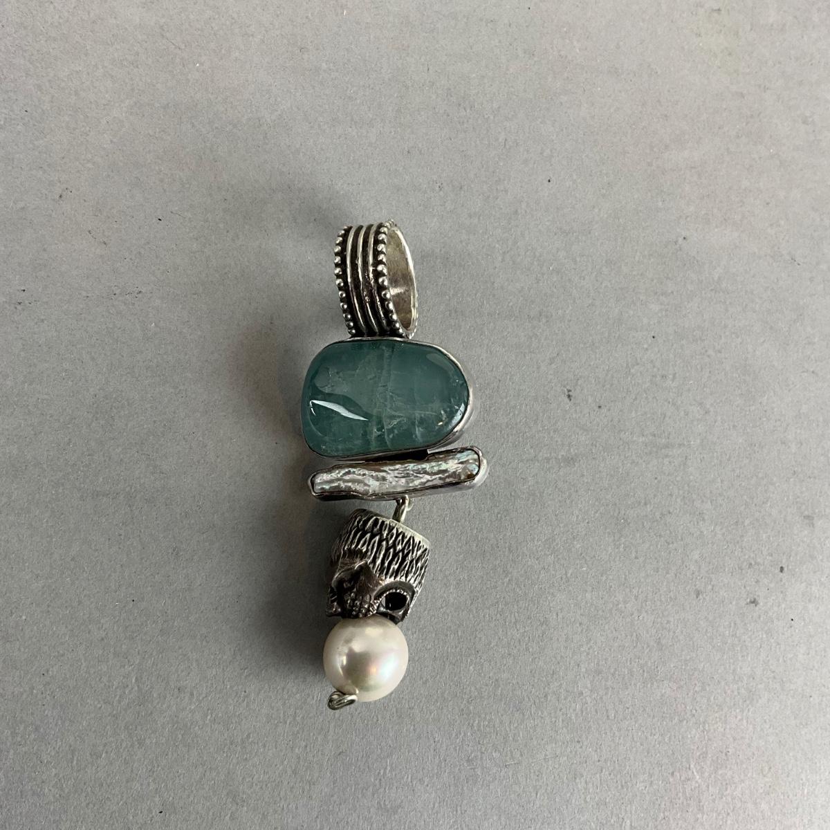 S846 Sterling Silver Rebecca Collins Mother of Pearl and Aquamarine Pendant