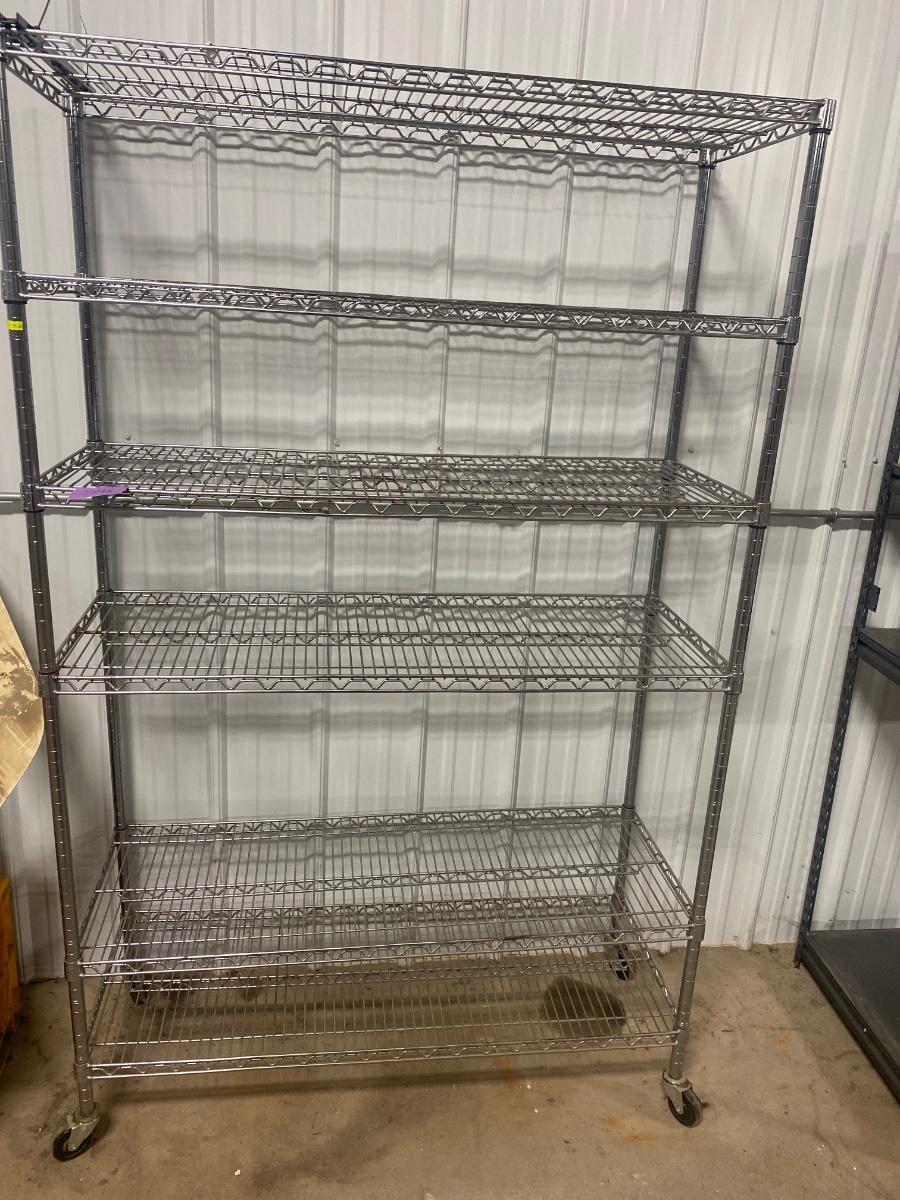 S86 Shelving on wheels, 75 and three-quarter inches tall, 47 1/2 inches wide, 18 inches deep