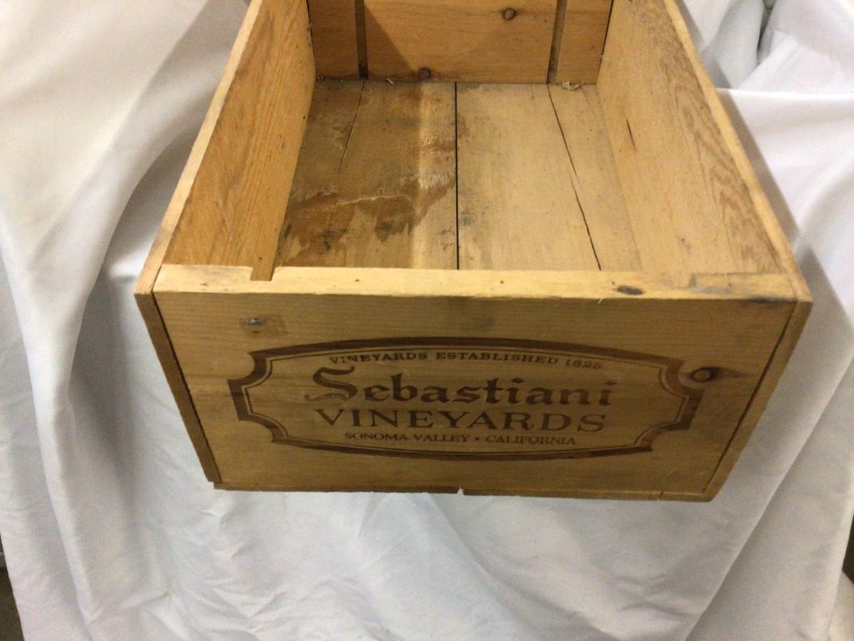 You get this great Sebastrani Vineyard wood wine create. No lid but in good condition.