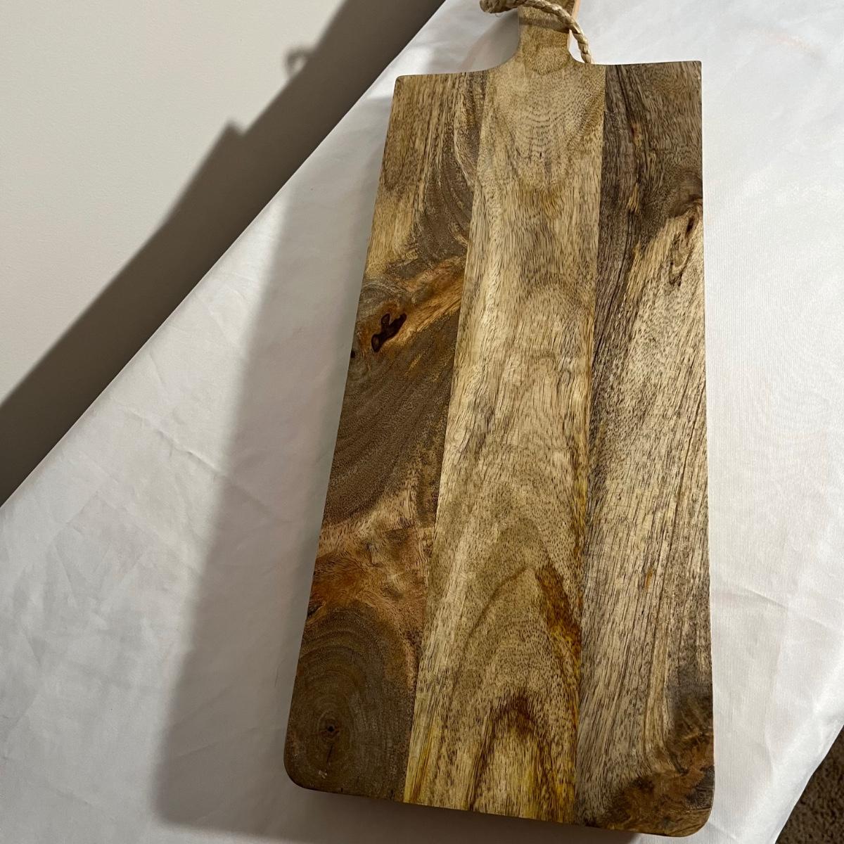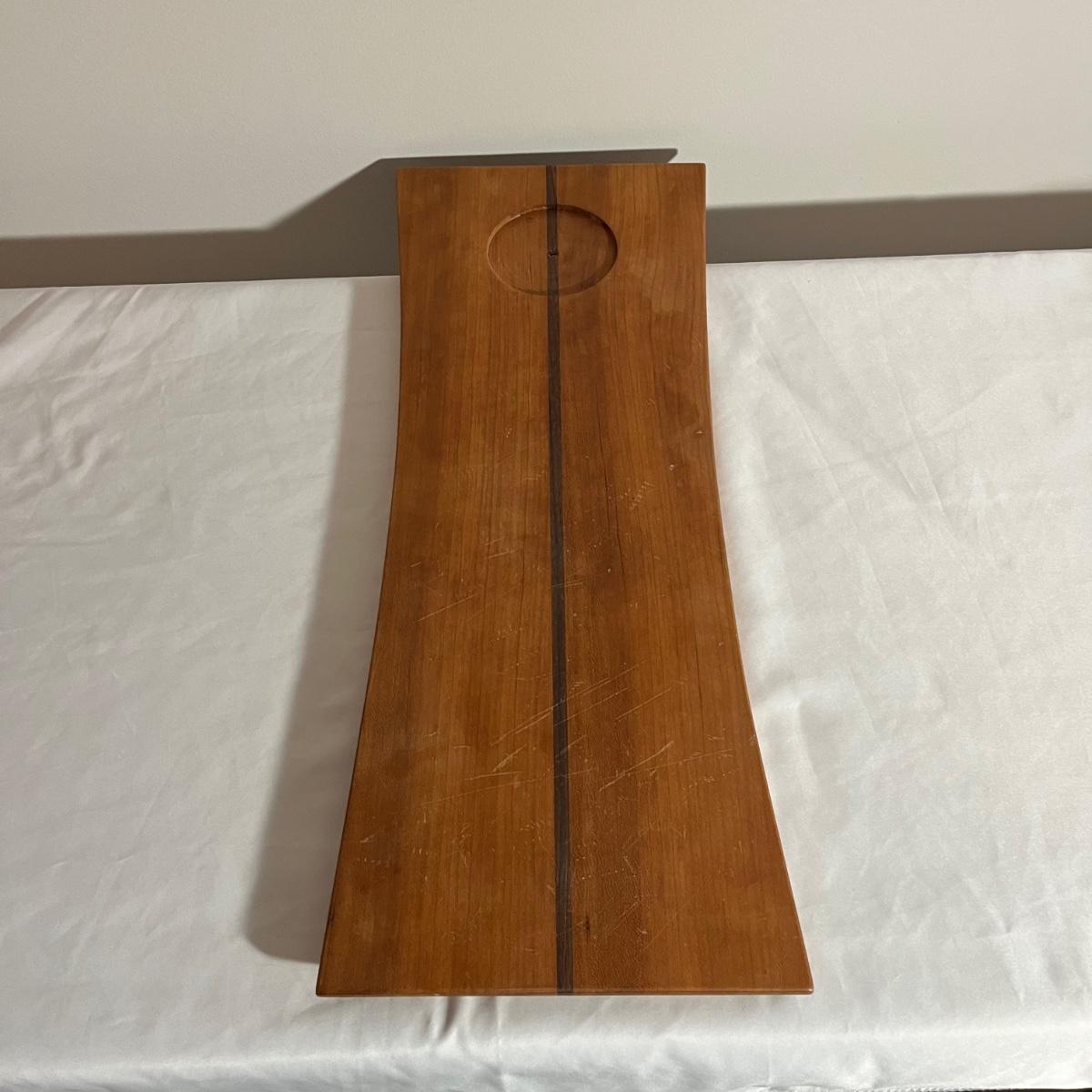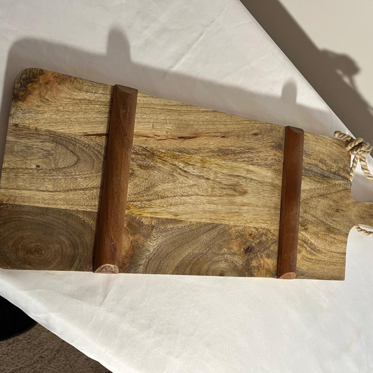 Lot includes a Sabbath Day Woods breadboard, Lipper International wooden container with lid and an unmarked wooden cutting board. Cutting board measures 8” x 23.5” x 1.5”.