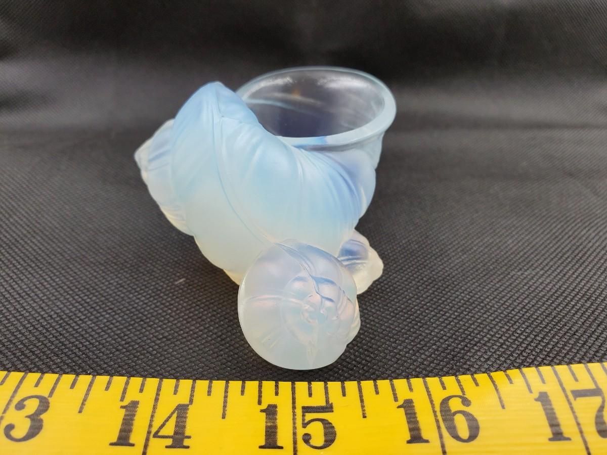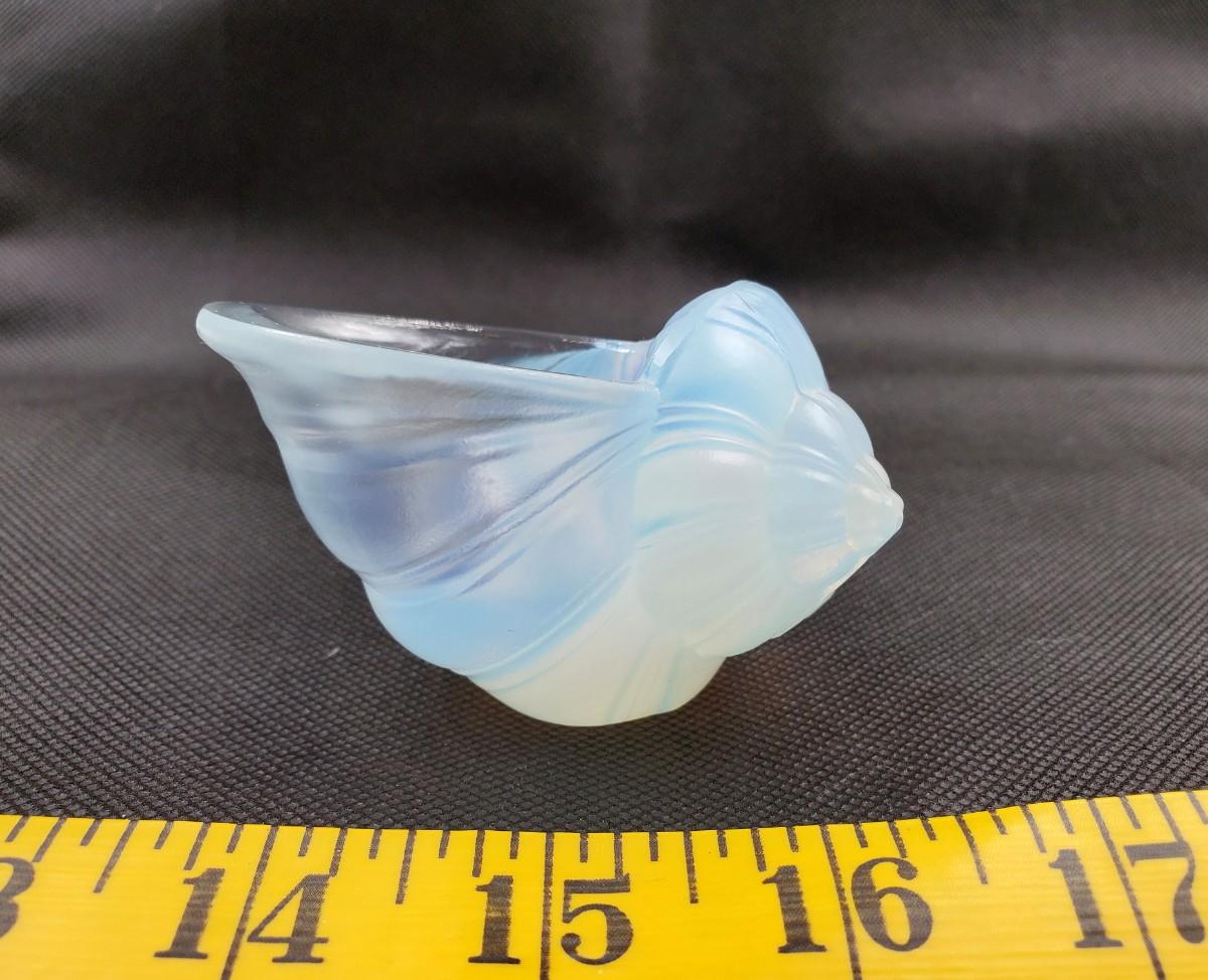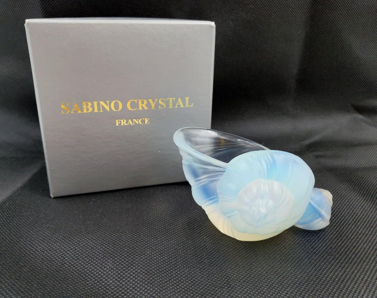 Stunning opalescent crystal snail shell Sabino piece. Signed "Sabino France" on bottom. It is also stamped Sabino France near the bottom but due to the color and the size it is very hard to capture with the camera. Very good condition. Box included, good condition.