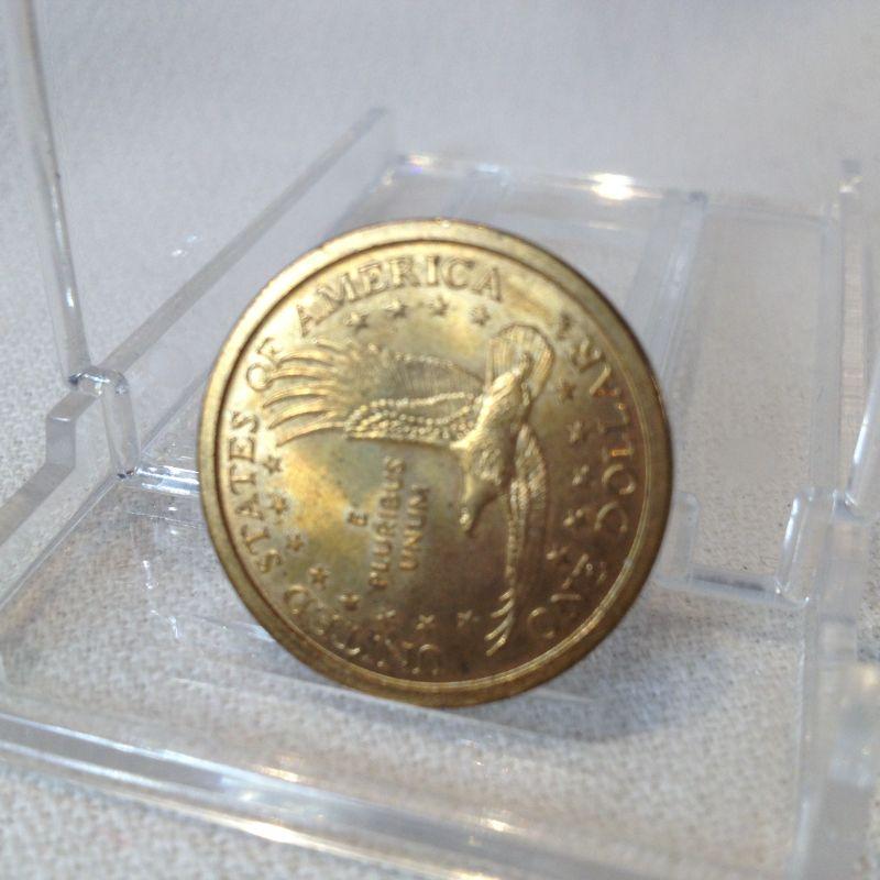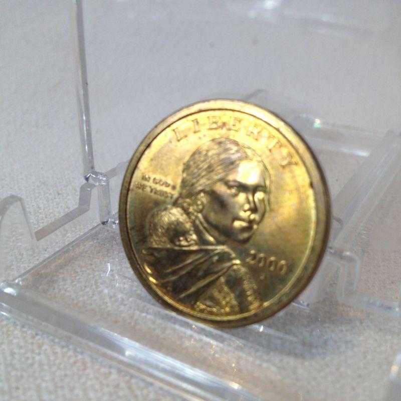 This lot is for a 2000 P Sacagawea $1 Coin in good condition. We have paired it with a new matching empty coin collector's folder.