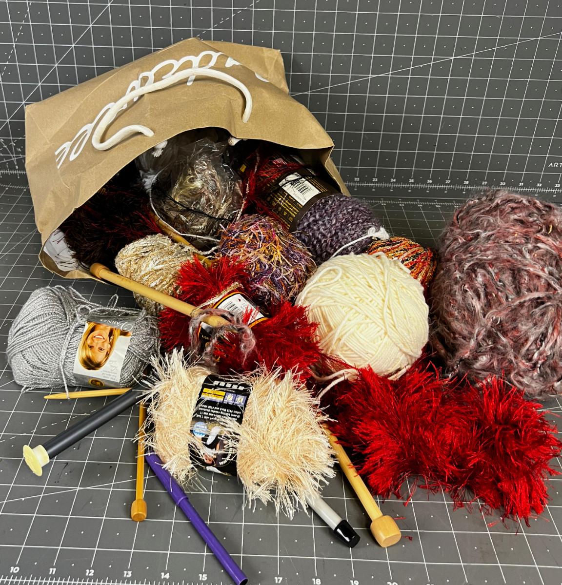 Sack of Cool Yarns Plus knitting Needles