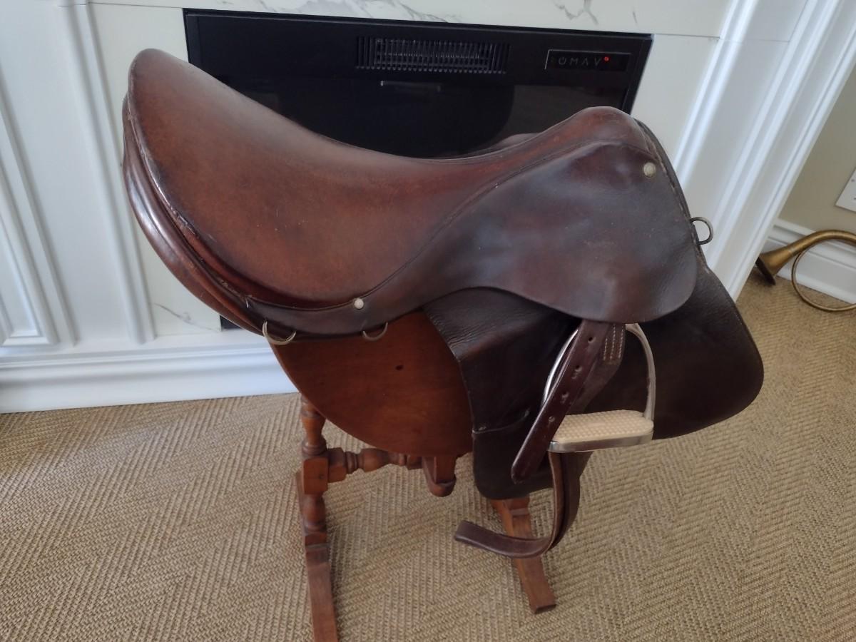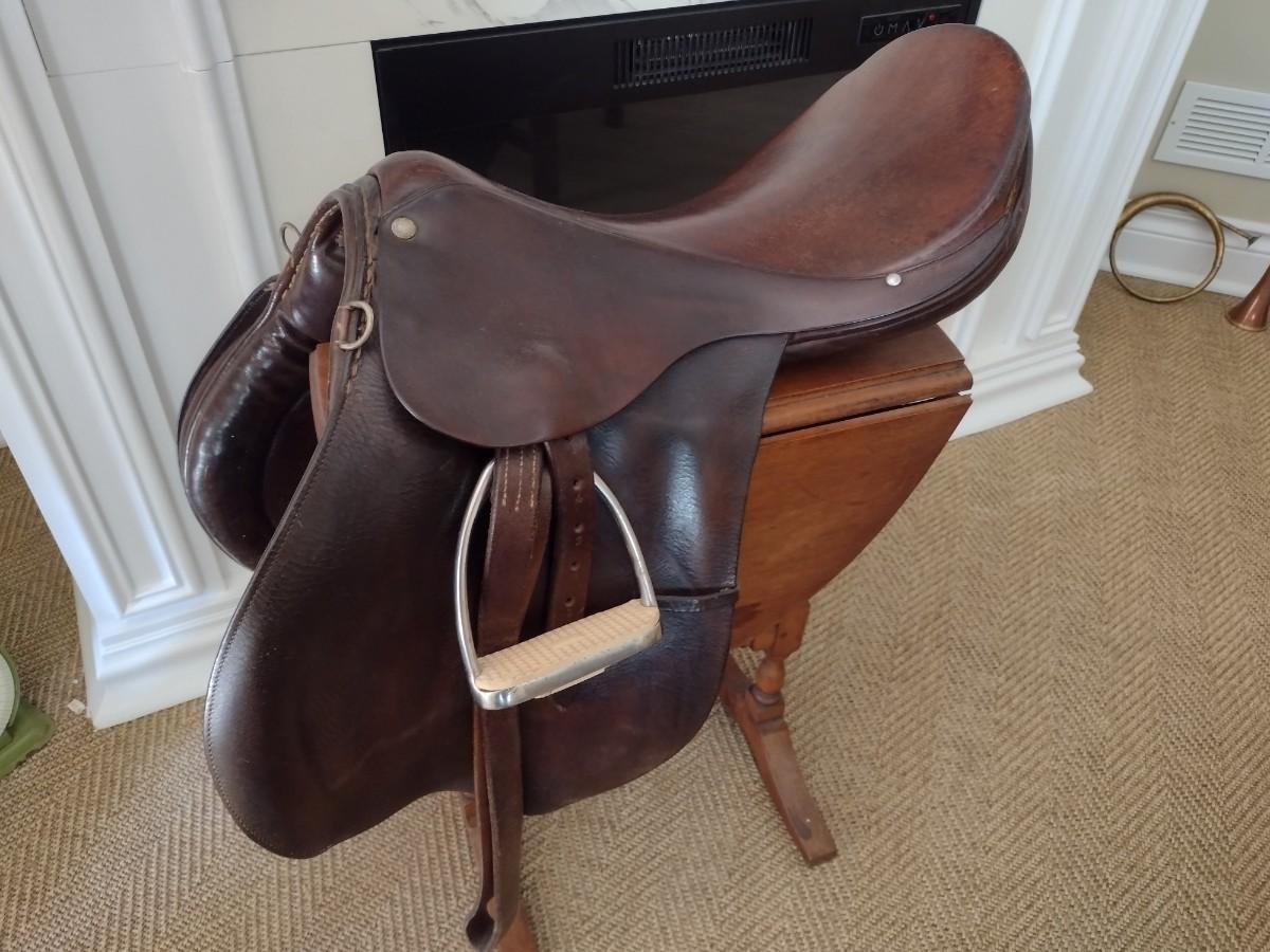 Leather Hunter/Jumper Saddle with Tack, Belly Strap, Wool Seat Saver, and Cover