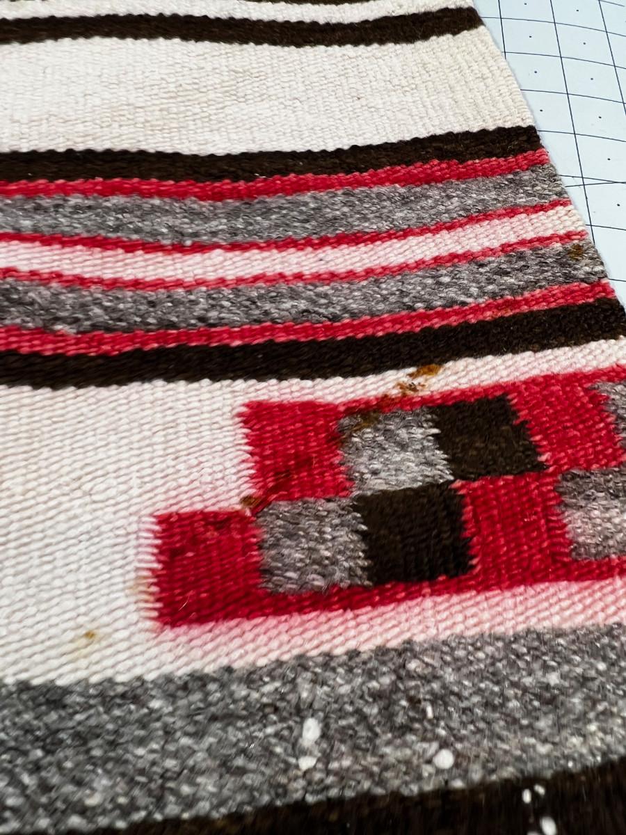 52 x 26" Little Bit of Color Run on it. Has Edge wear going on. Antique Wool Vintage. Any horse would love it.