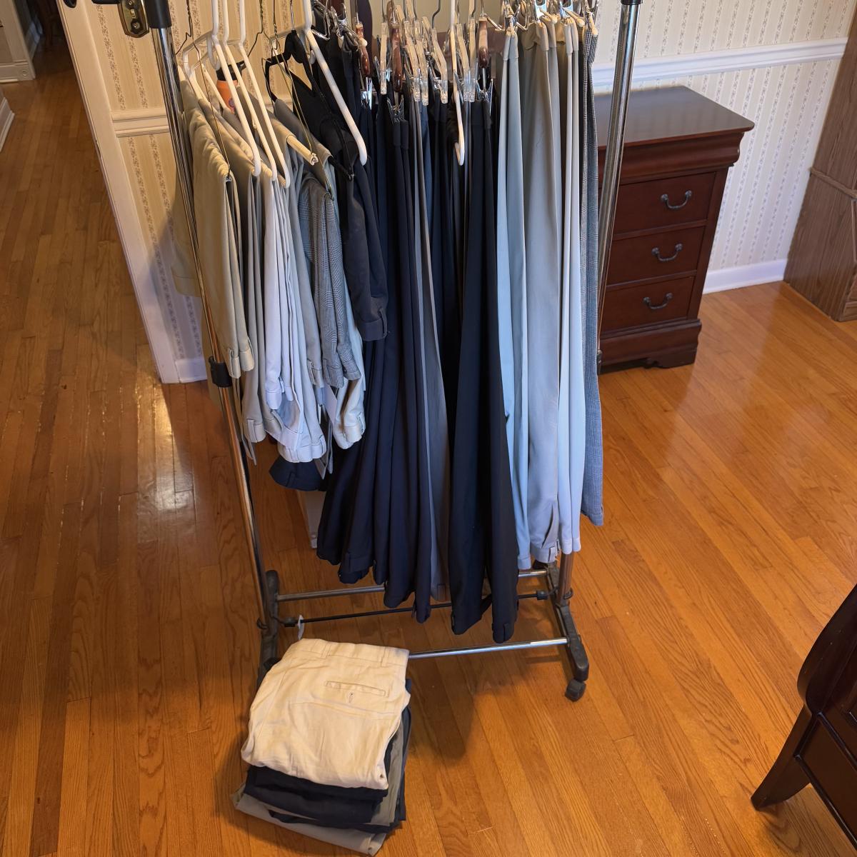 Lot includes thirty pairs of men’s dress pants, all in sizes 34-38, with most being from Jos. A. Bank. You’ll find other brands, too, like Haggar Clothing, Izod, Saddlebred, and Savane. A select few items are shown in individual pictures. Shipping available.