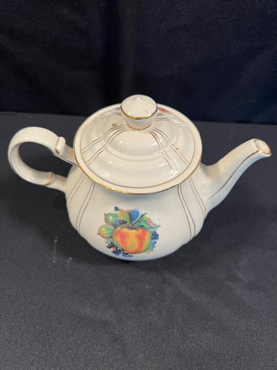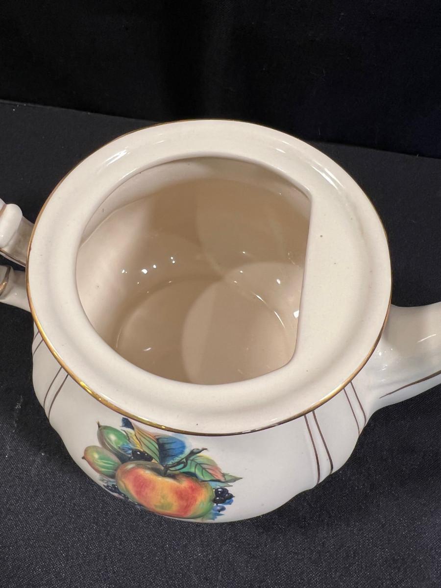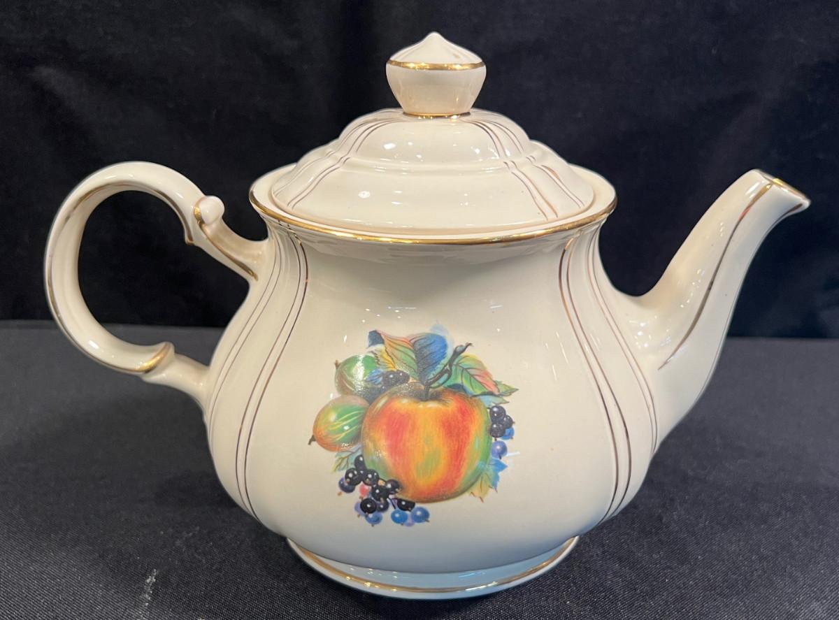 Sadler Tea Kettle, Beige with Fruit