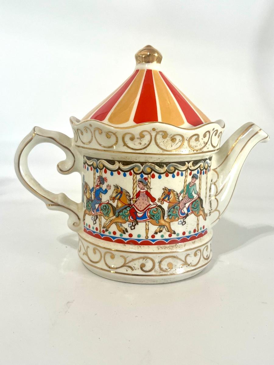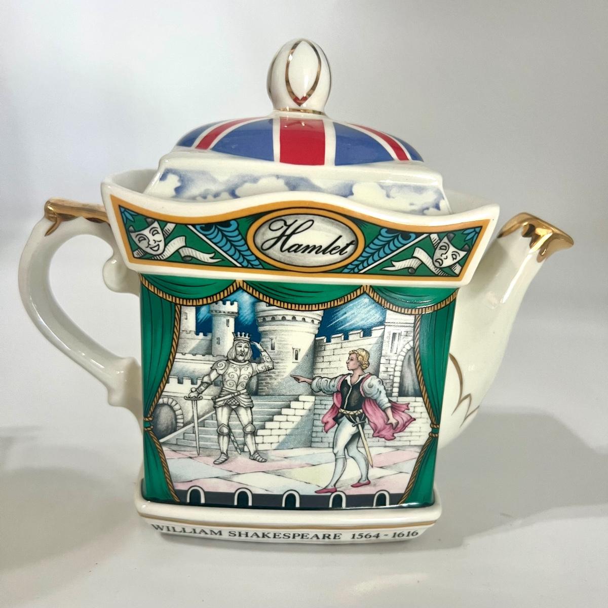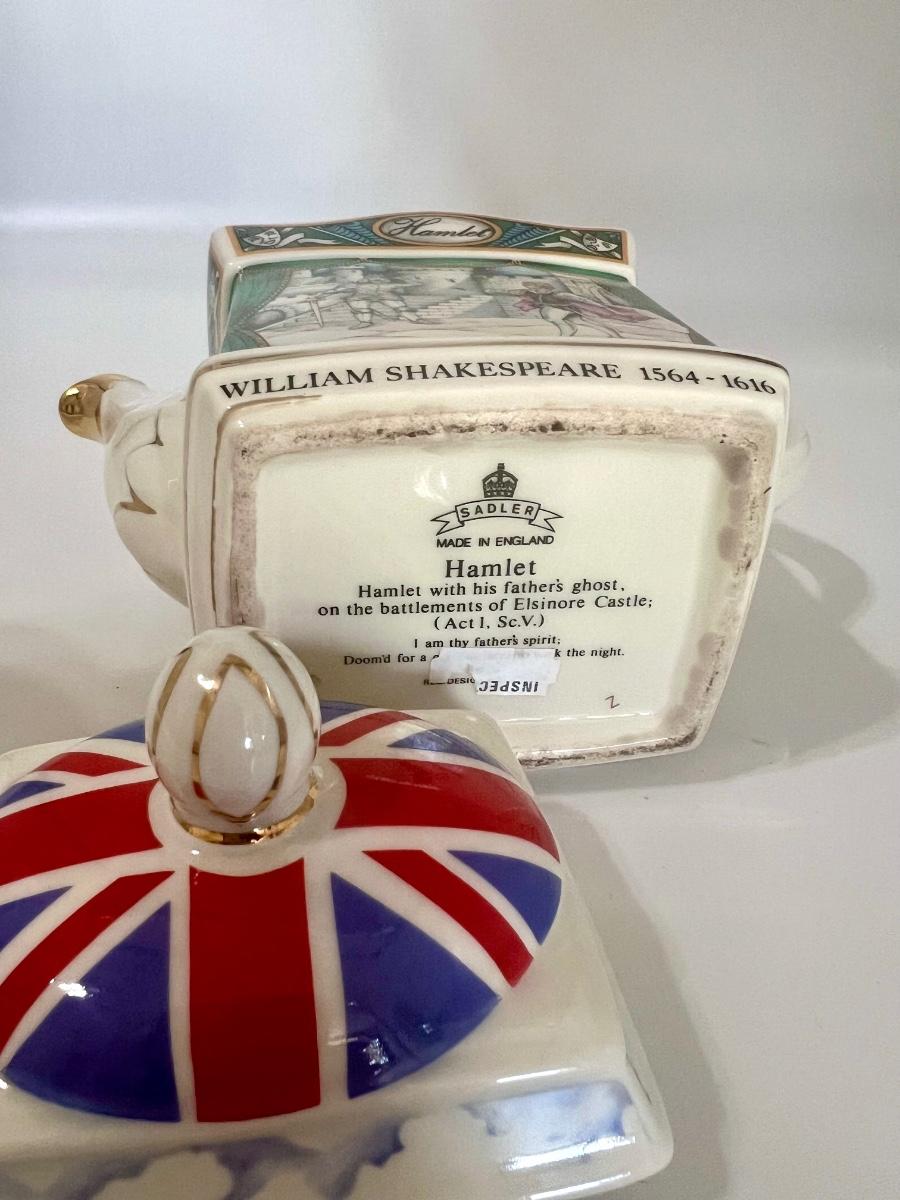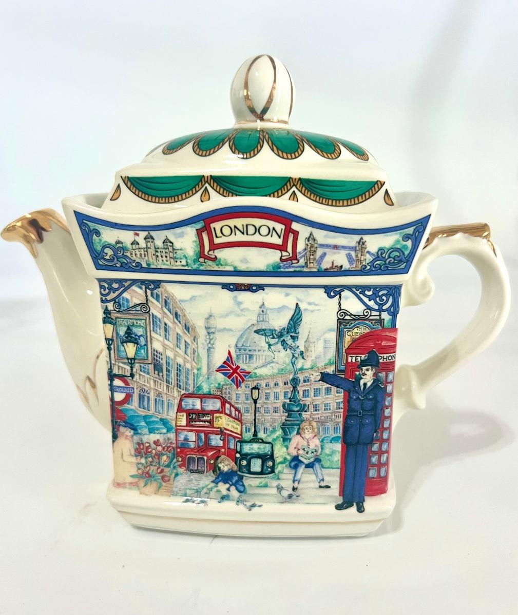SADLER Tea Pot Lot Includes three teapots with lids, one teapot without lid, and one Merry Christmas mug.
