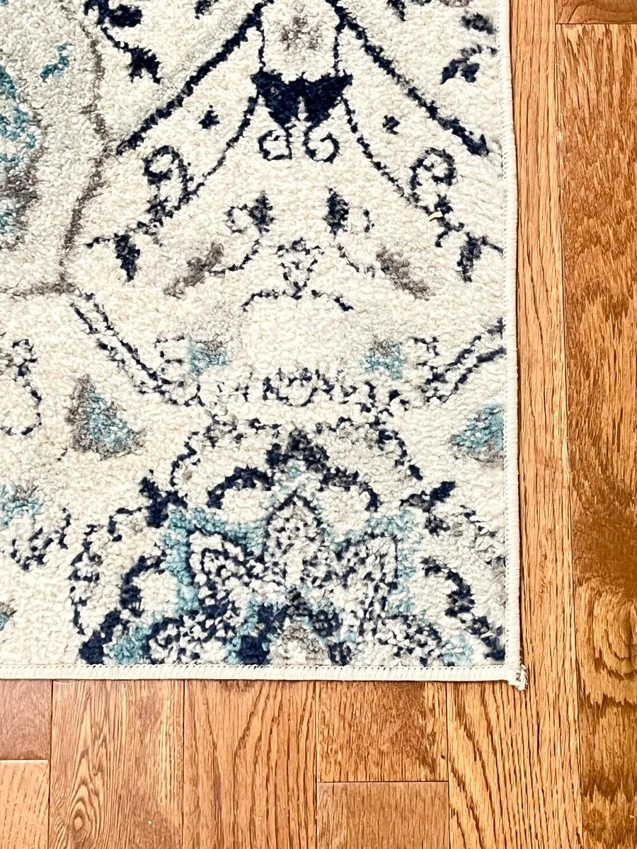 11’ x 15’ ~ Cream light grey and blue ~ deodorized, disinfected & sanitized ~ Needs additional cleaning ~ No pets ~ No smoking