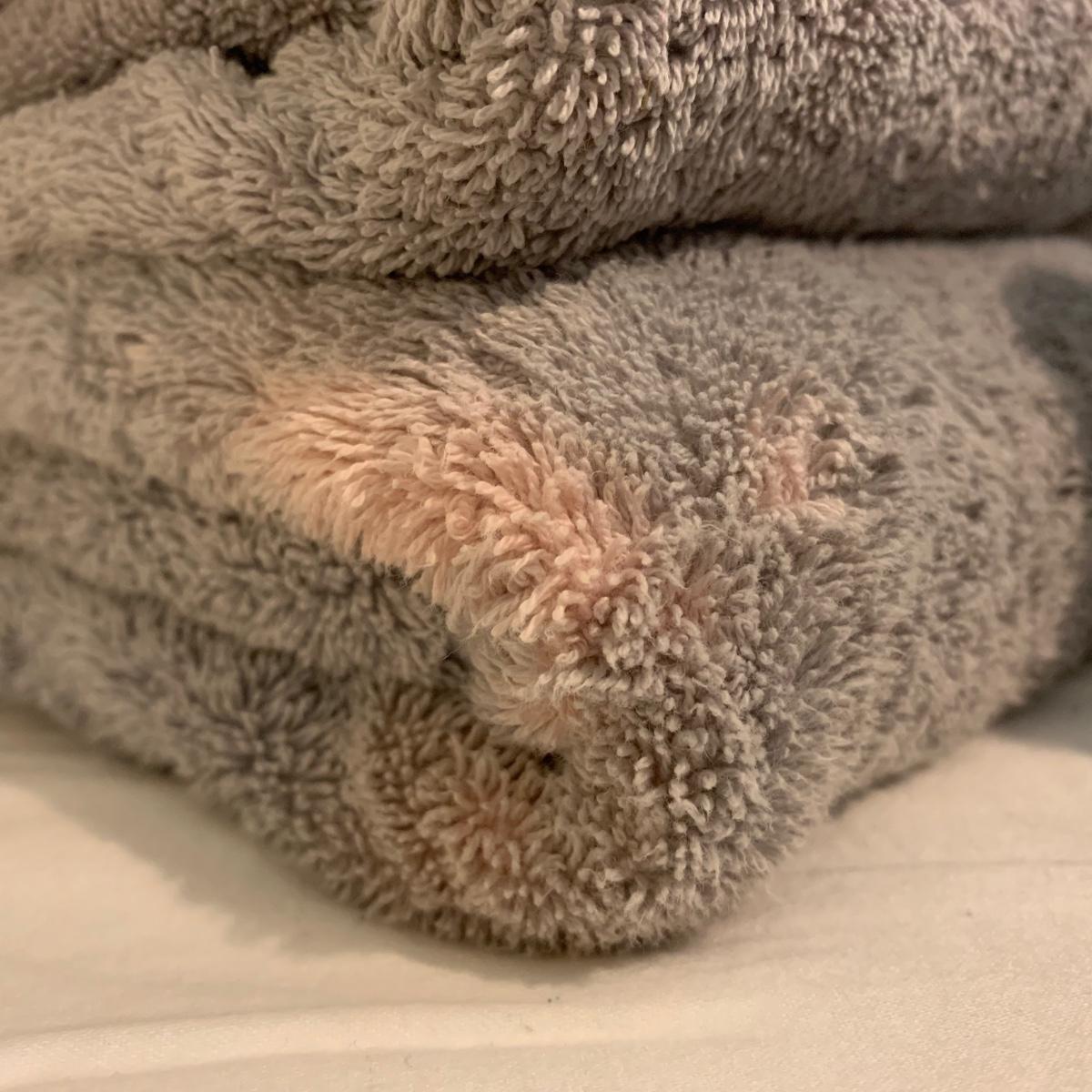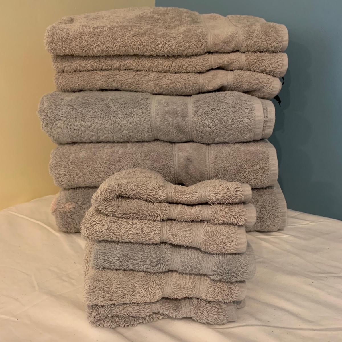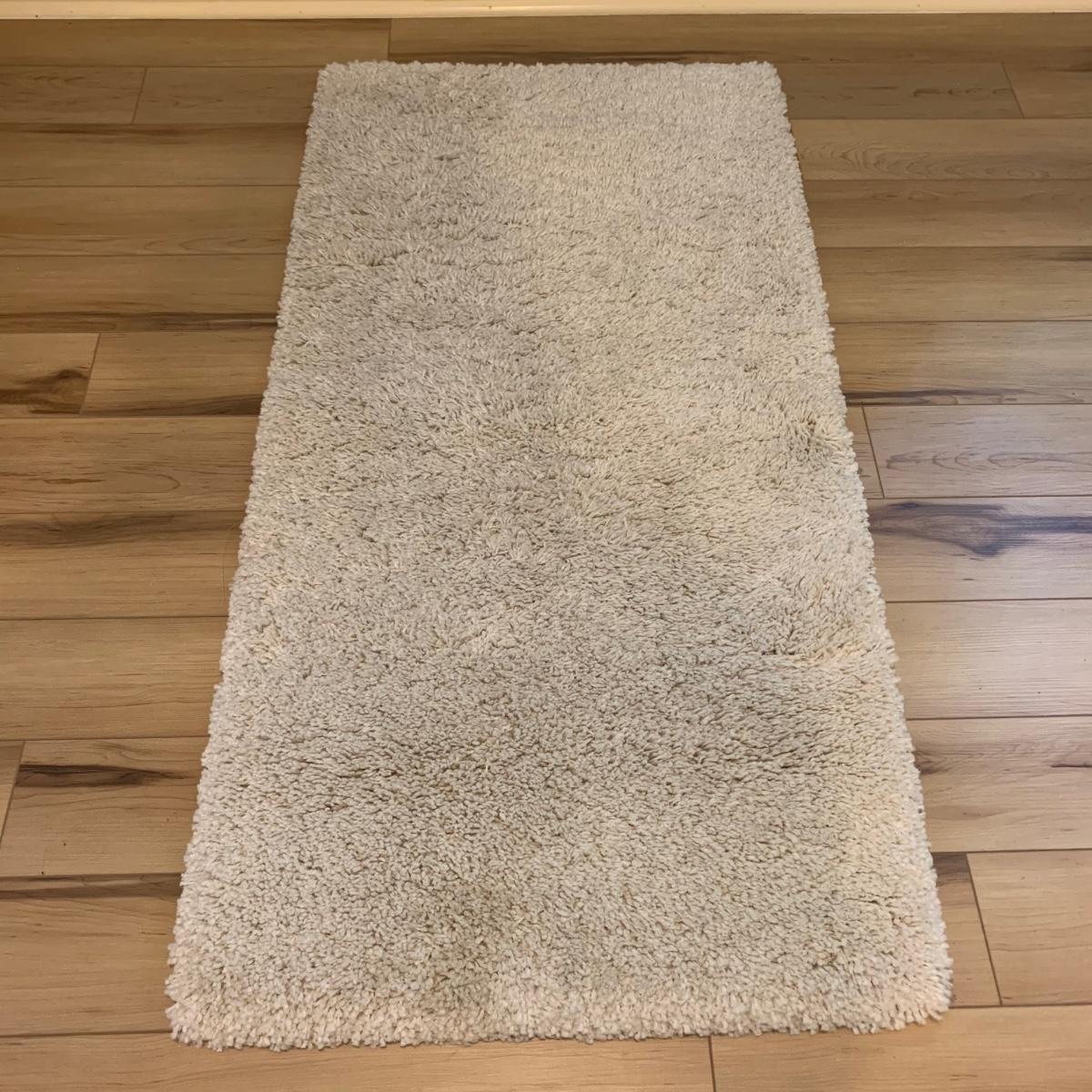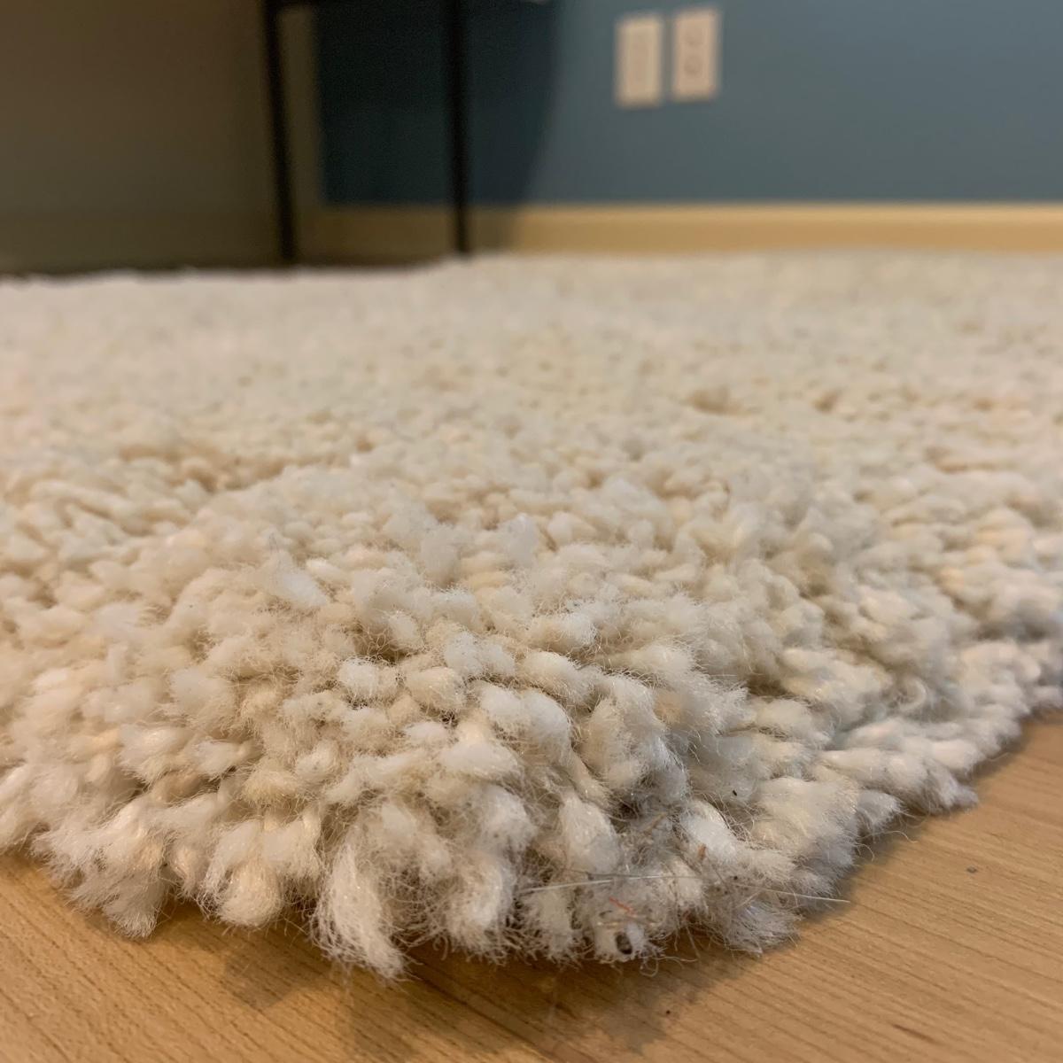 Safavieh Milan shag rug in ivory. Rug comes with four bath towels, four hand towels, and six washcloths. Rug measures 2” x 4” and is made of a thick shag material. Please note that a two linens have spots of discoloration. Please see photos for more details. Shipping available.