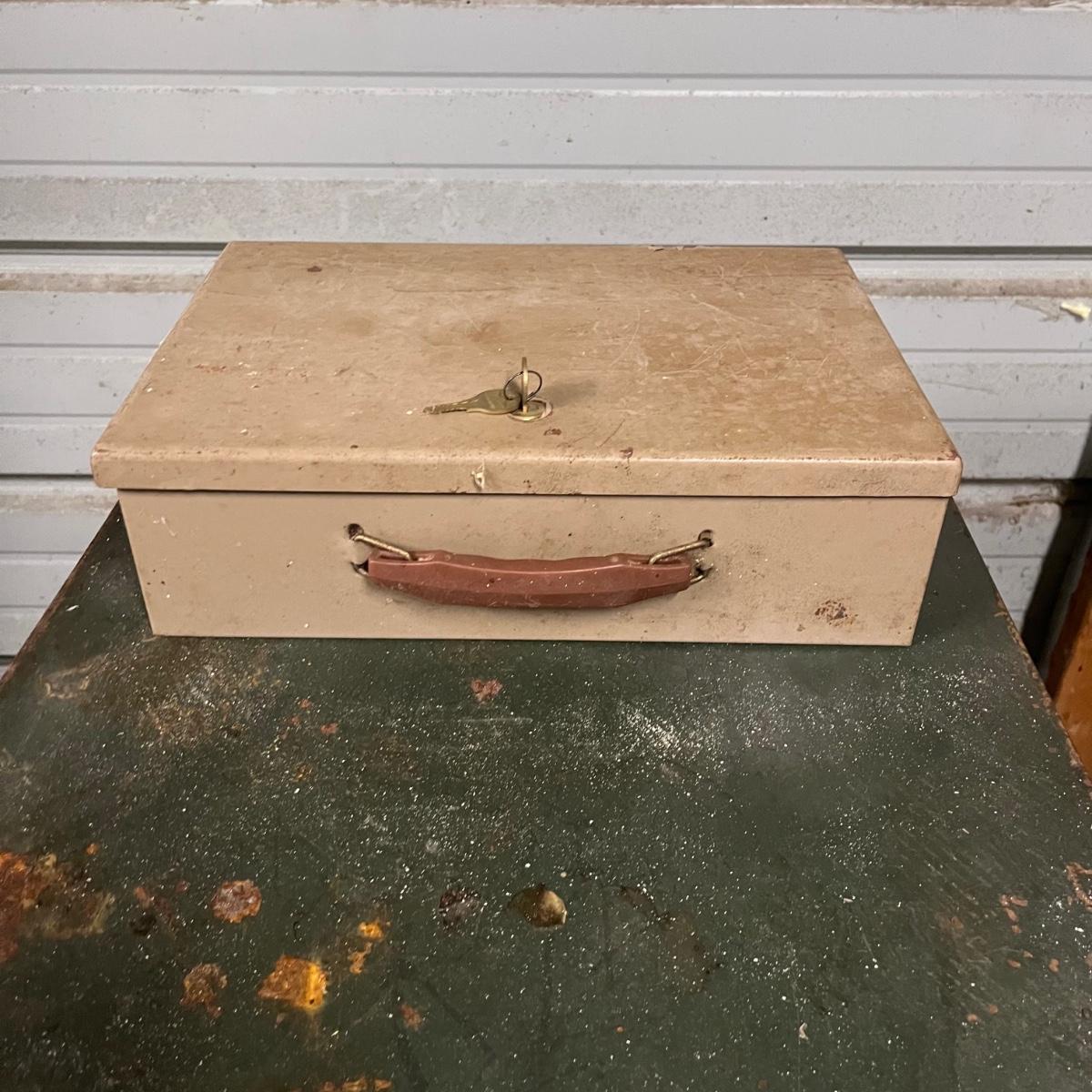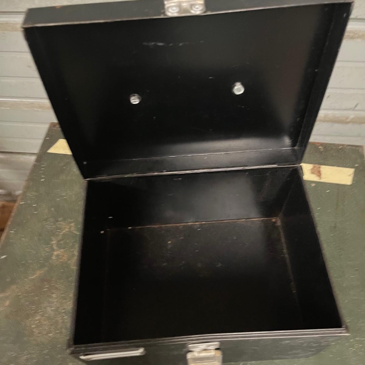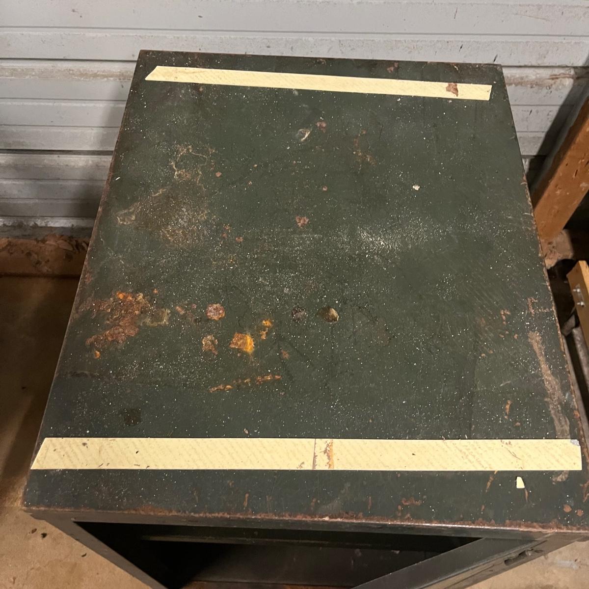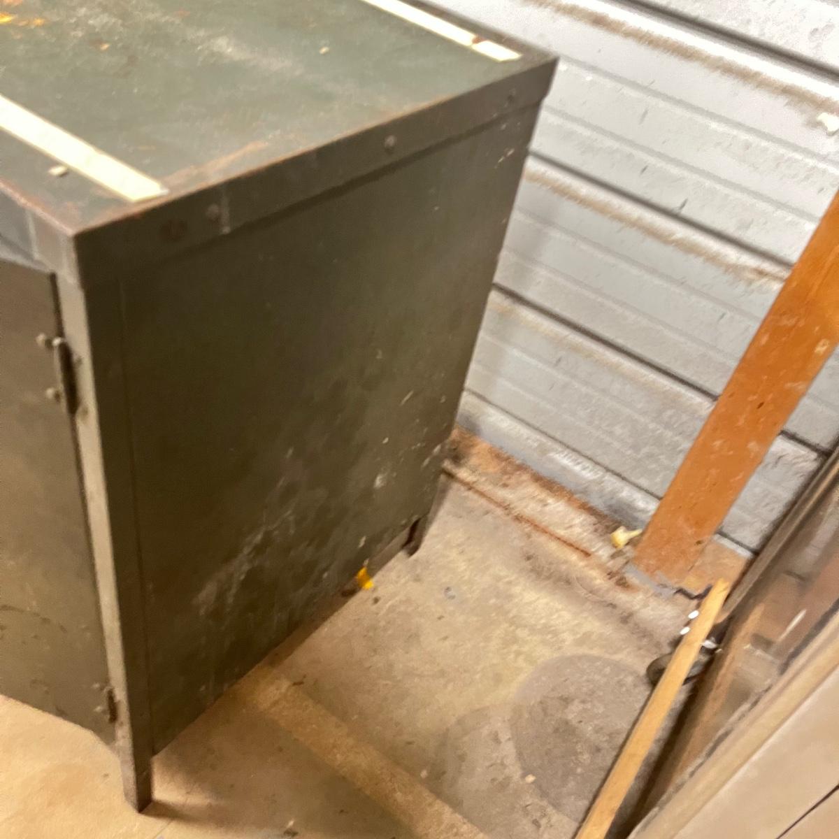 Lot includes a large safe with combination lock, and two metal lock boxes. Safe is open but we do not have combination or key. Safe is scratched and has some rust, see pictures. Safe measures 18” x 22.5” x 30.5”.