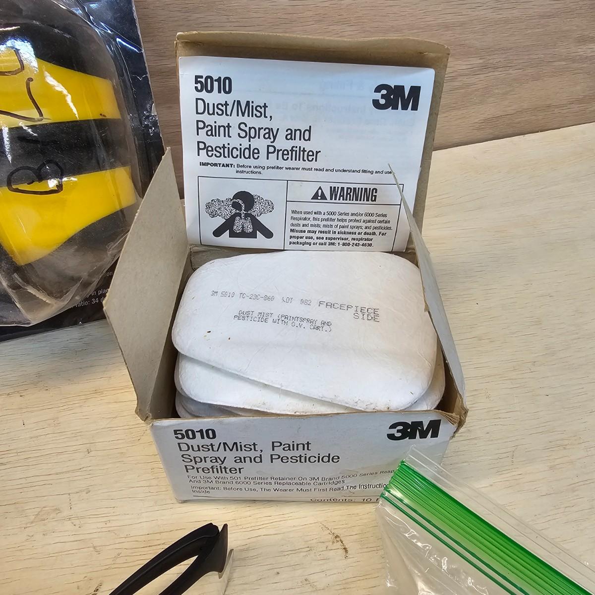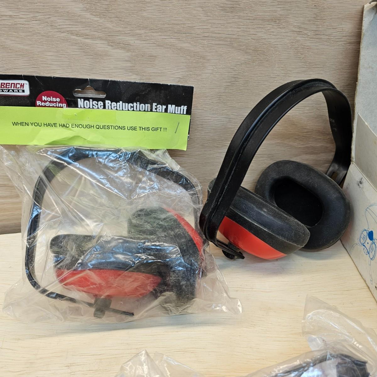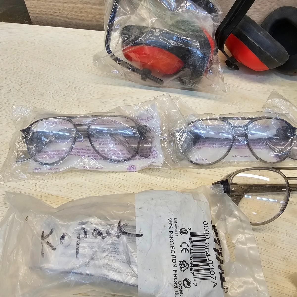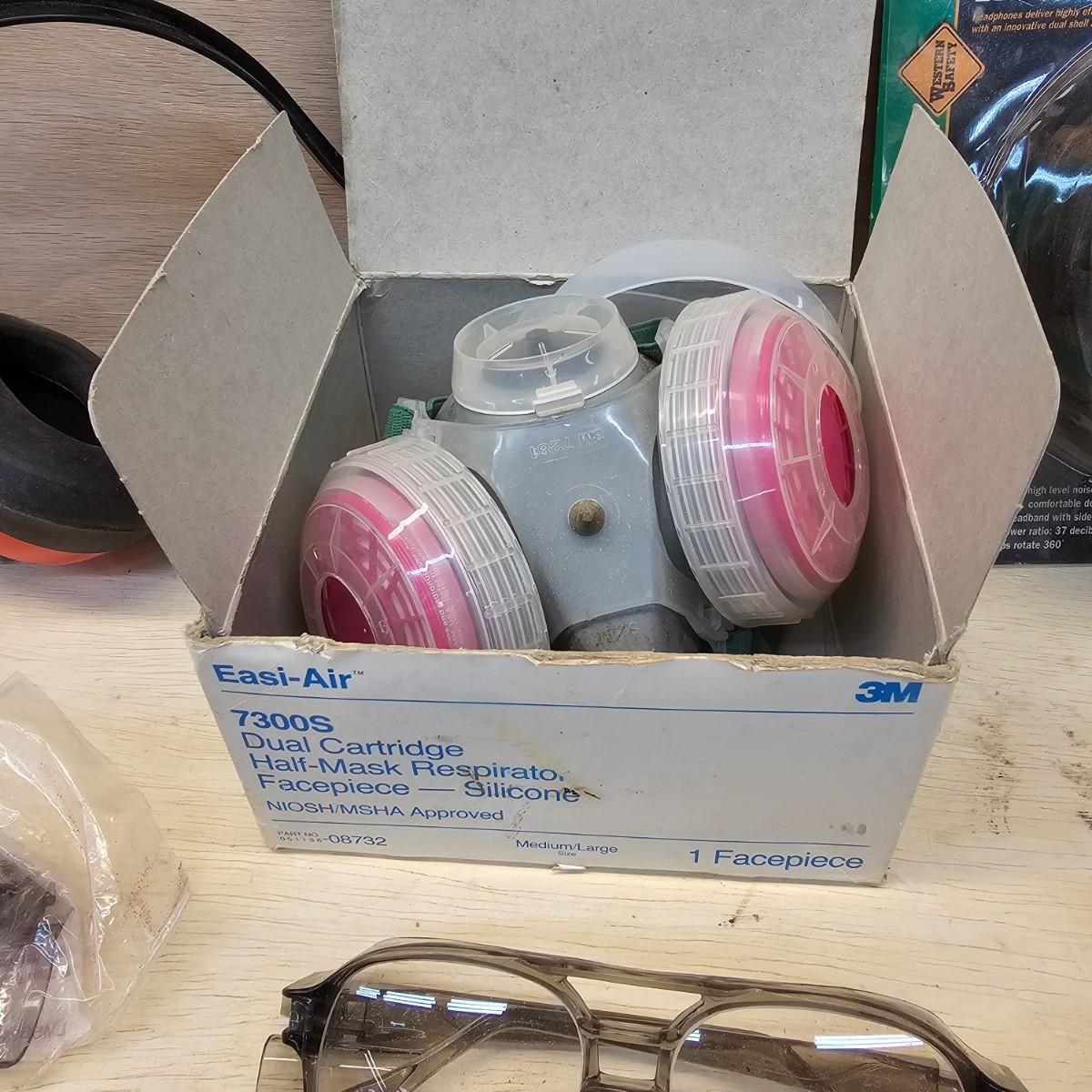 Protective goggles, hearing protection and dust masks in this group. Nine sets of goggles/glasses, three hearing muffs and a half mask respirator. Most items are used. See photos for details. Shipping available.