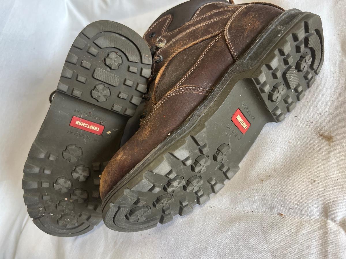 Craftsman brown leather steel safety toe boots, some wear on toes, soles in perfect condition. Size 10.5M
