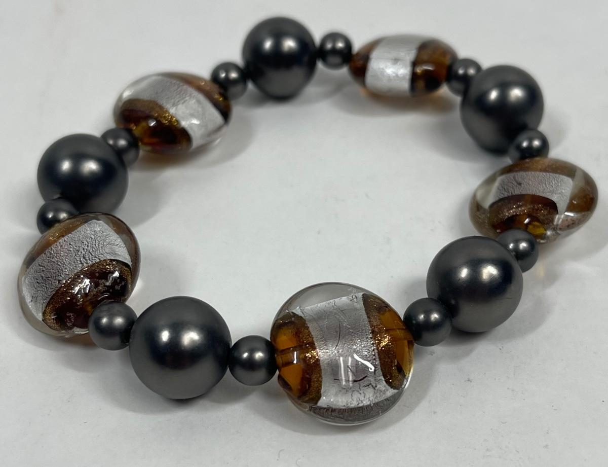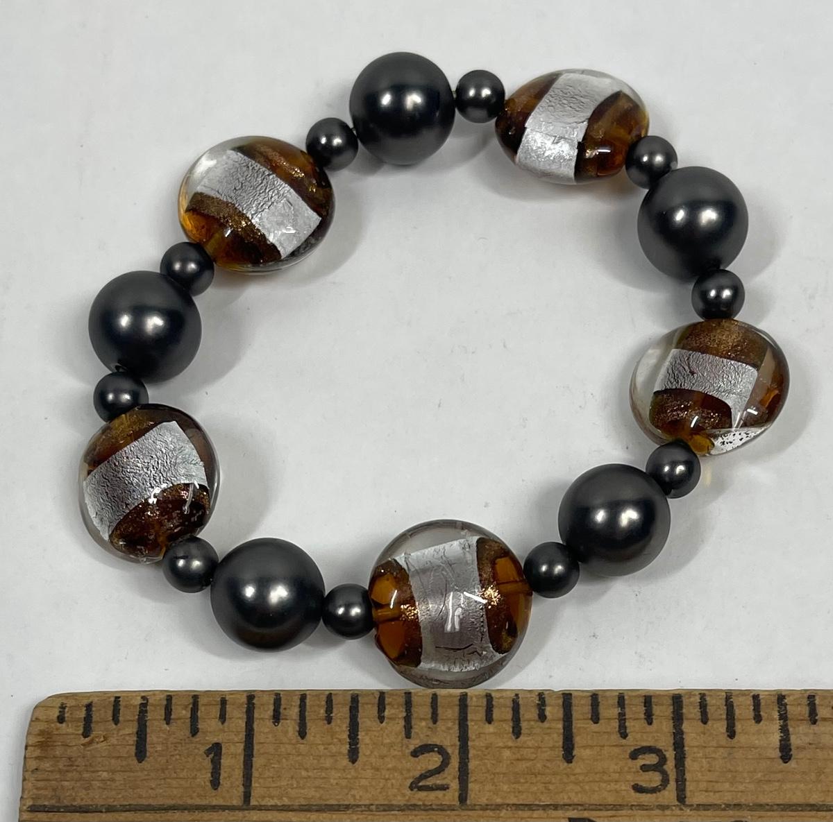 Bracelet, unisex, amber, black, & gray beads