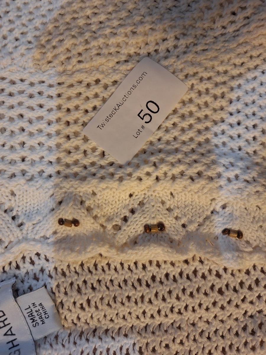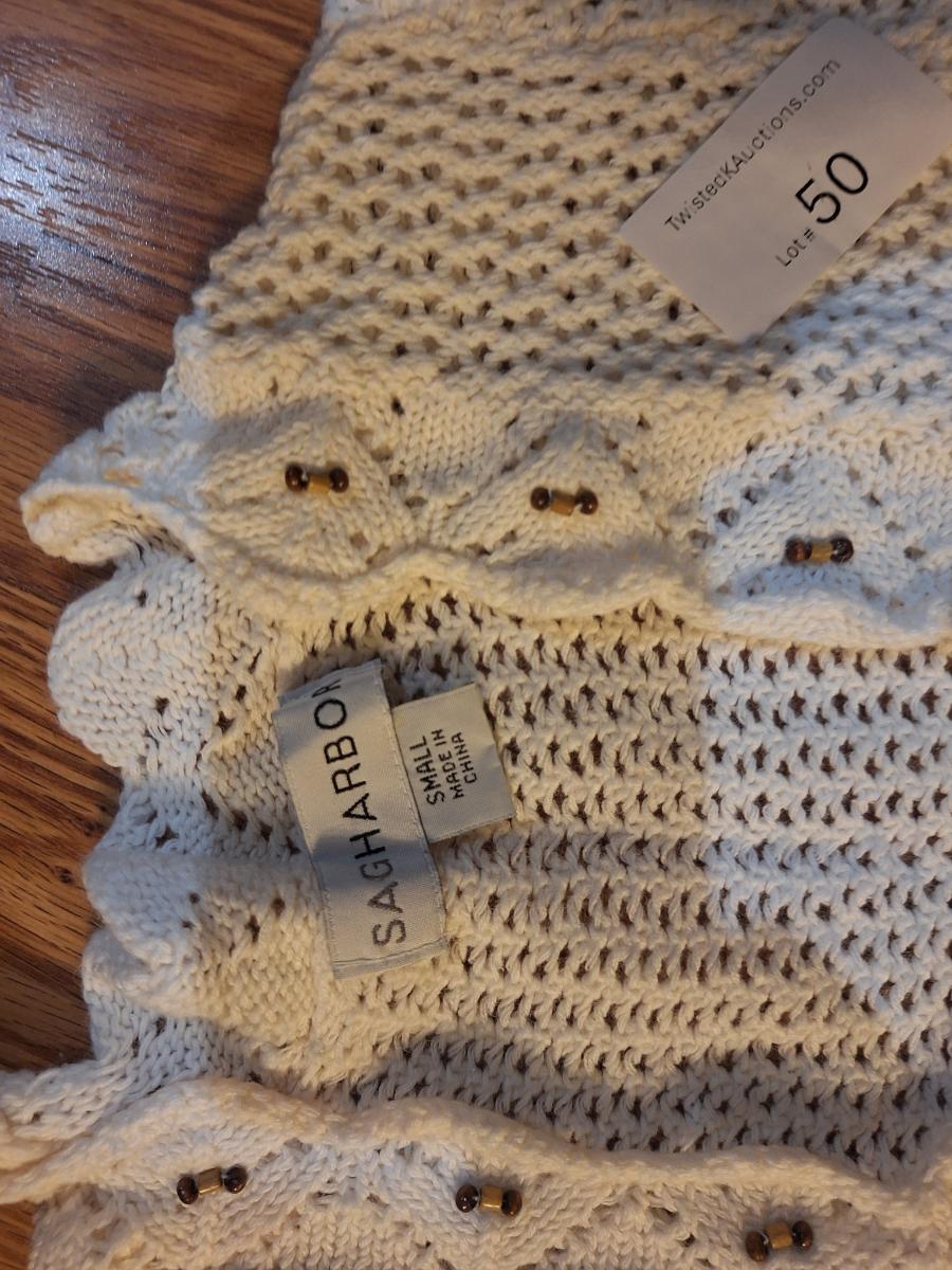 Sag Harbor white open-knit crochet short-sleeve cardigan size small