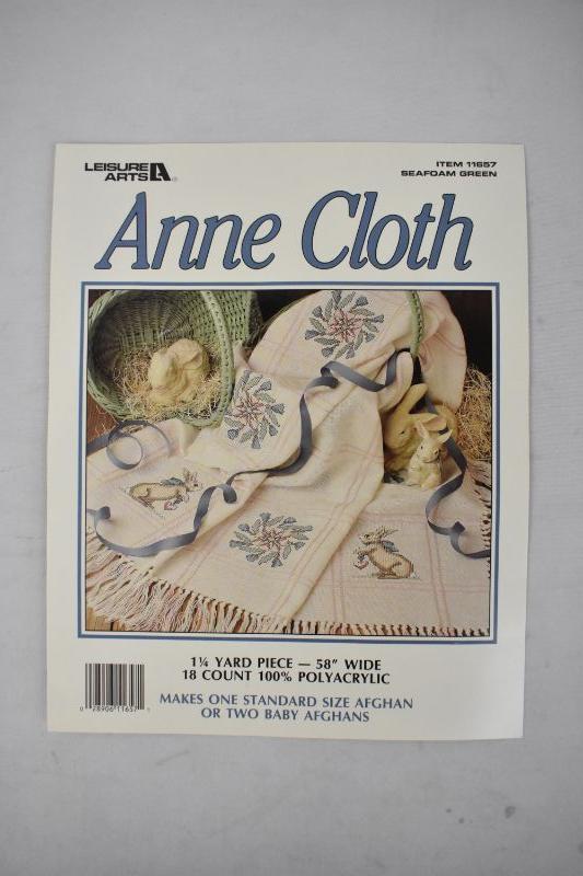 Sage Green Anne Cloth Cross Stitch Afghan Fabric with Instructional Patterns - New