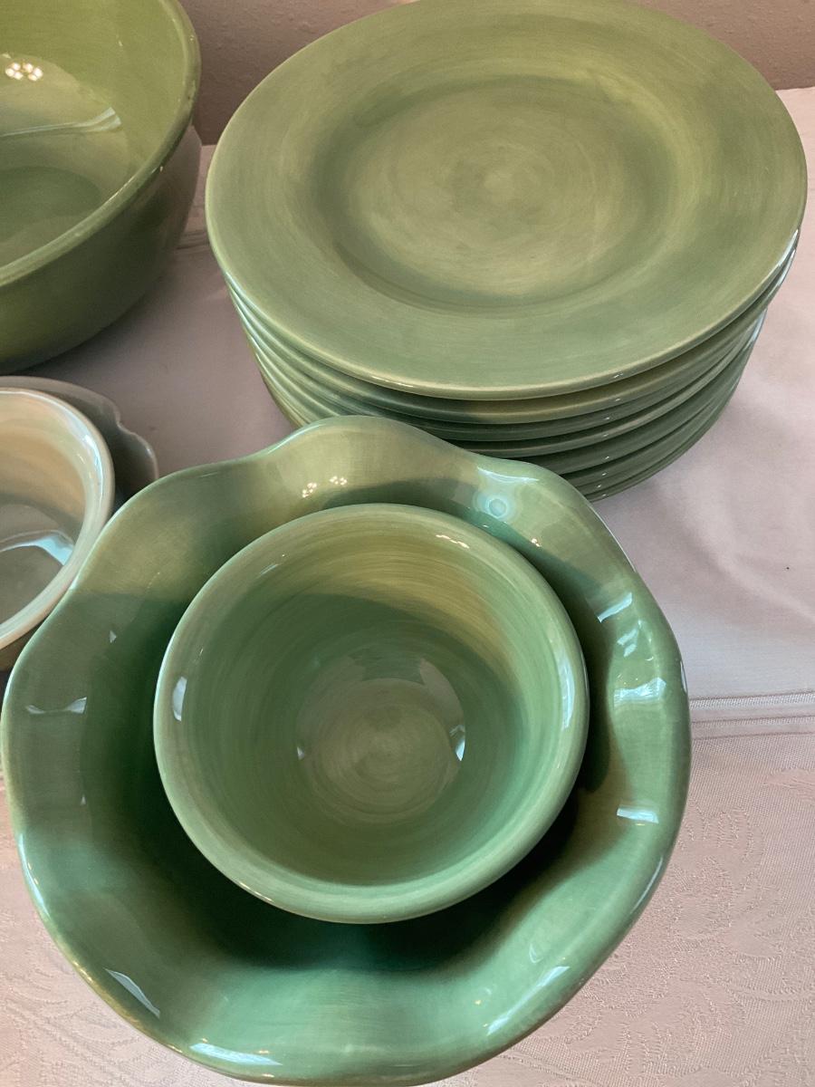 Two scalloped edge bowls, one large bowl, two medium size bowls and three smaller bowls