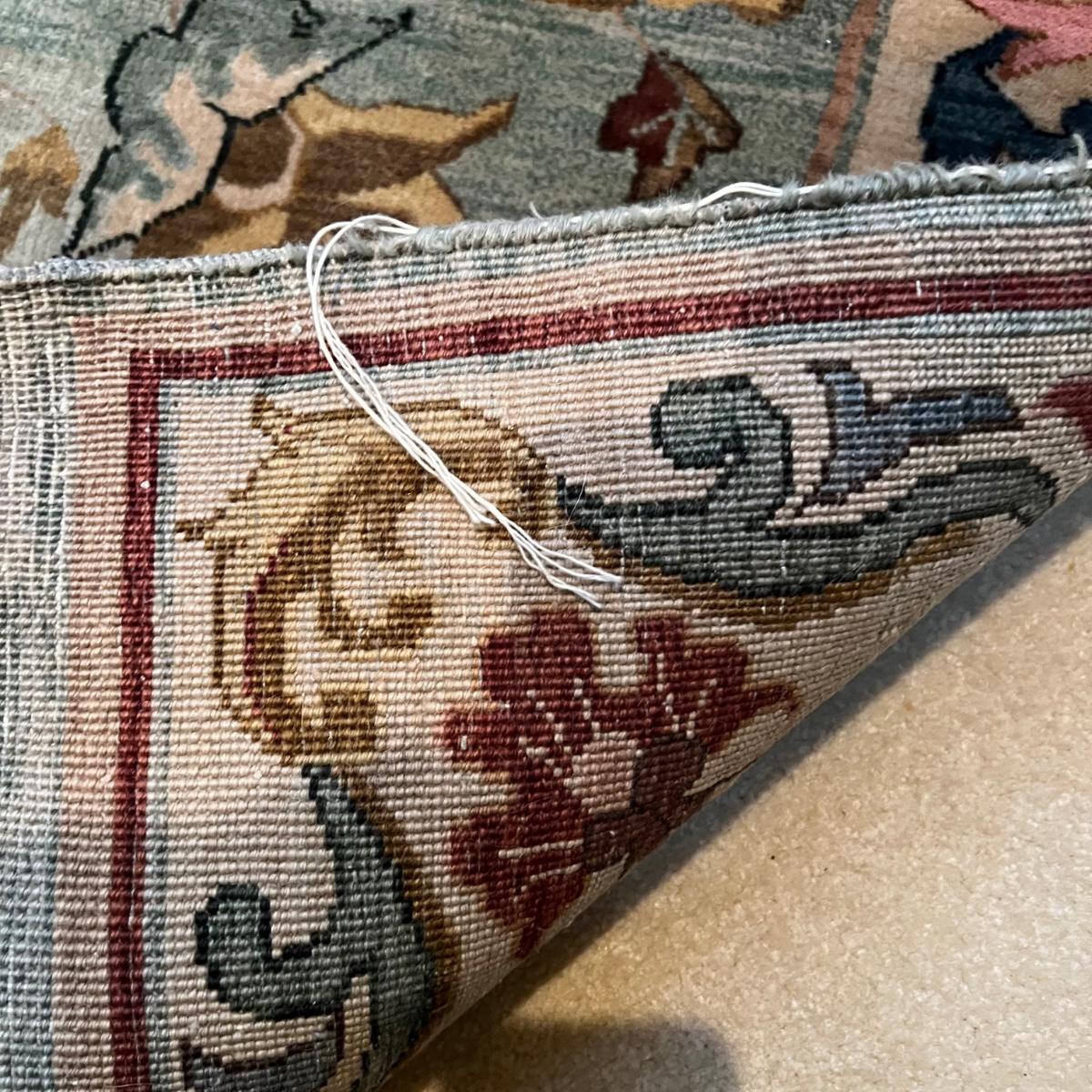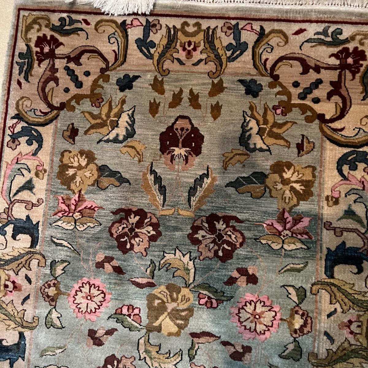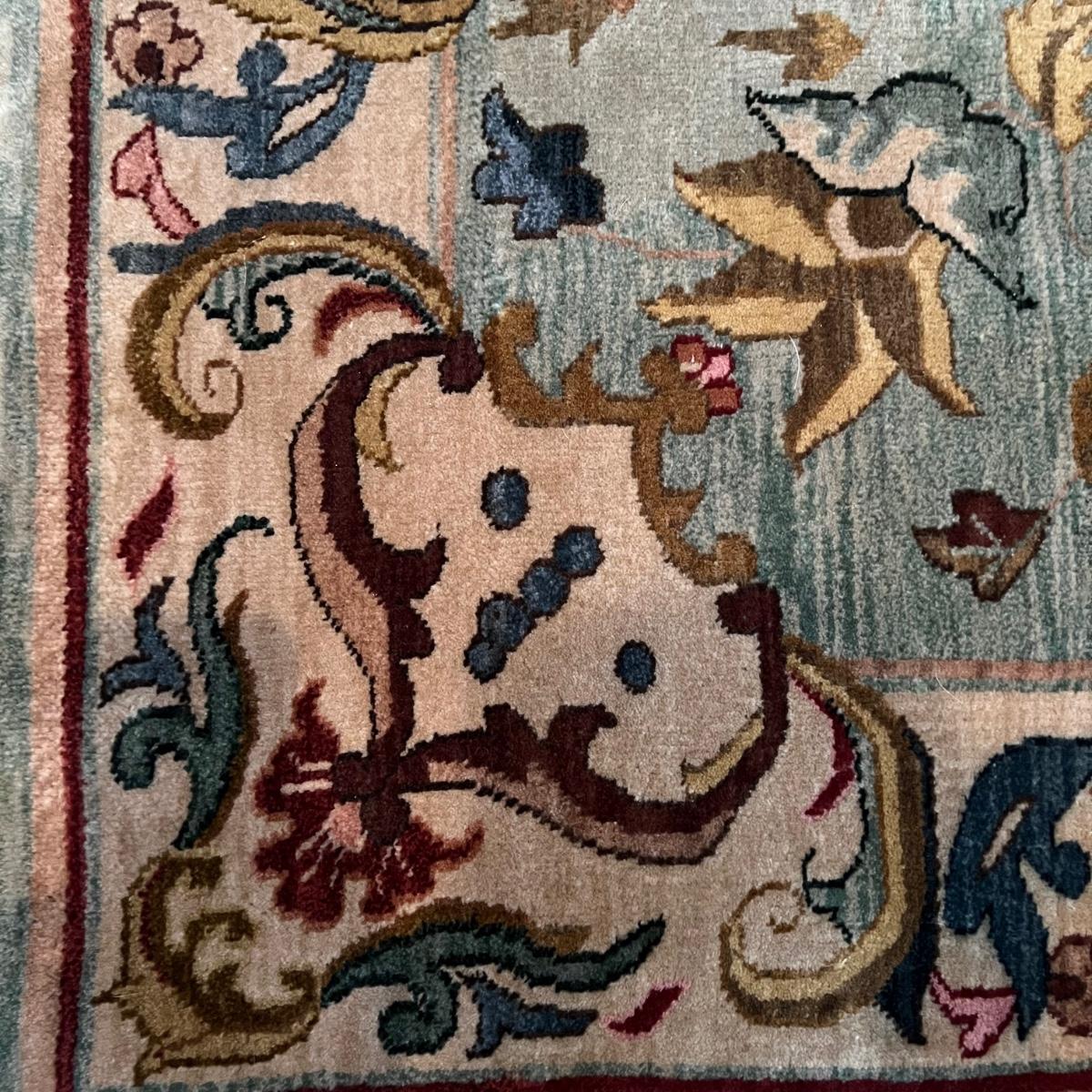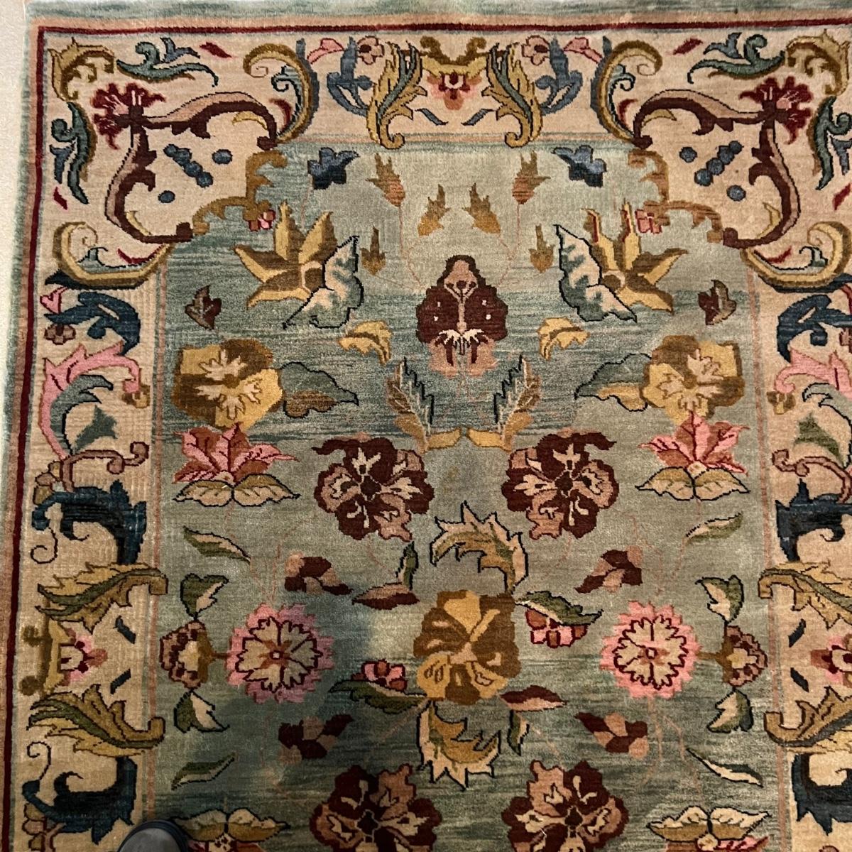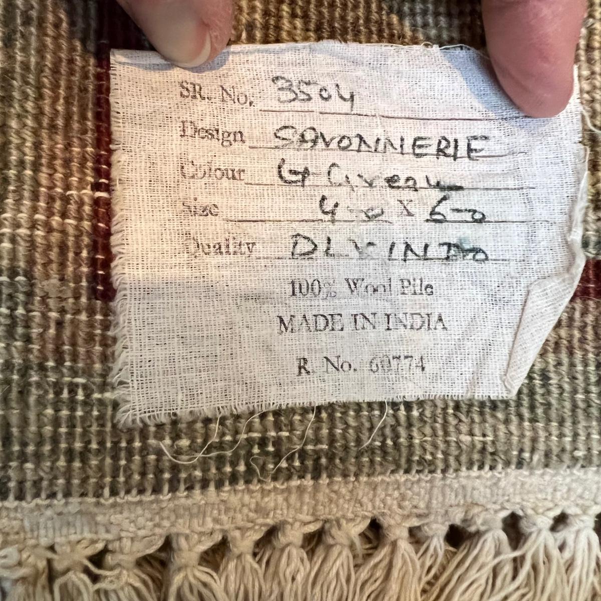 Add elegance with ease to any space with the addition of this beautiful Savonnerie style floral area rug. Gentle green, beige, gold and red tones, feathered leaves and soft blossoms these elements come together to deliver a classic mixture of grace and style. Made in India and measures 73” x 47.5”. Wool. Could use cleaning but otherwise I’m very good condition. Local pick up only.