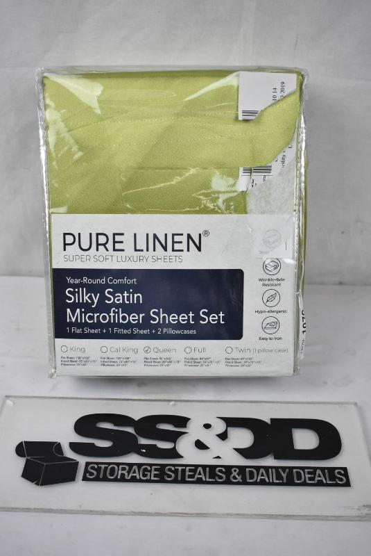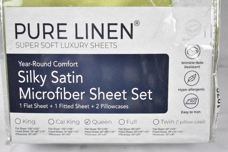 Sage Green Sheet Set, Queen Size. Silky Satin Microfiber. Small Snag