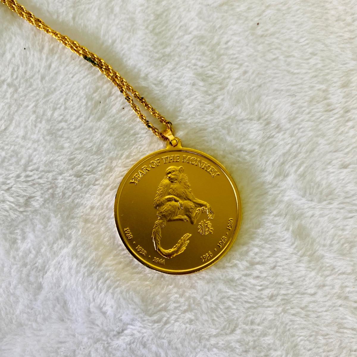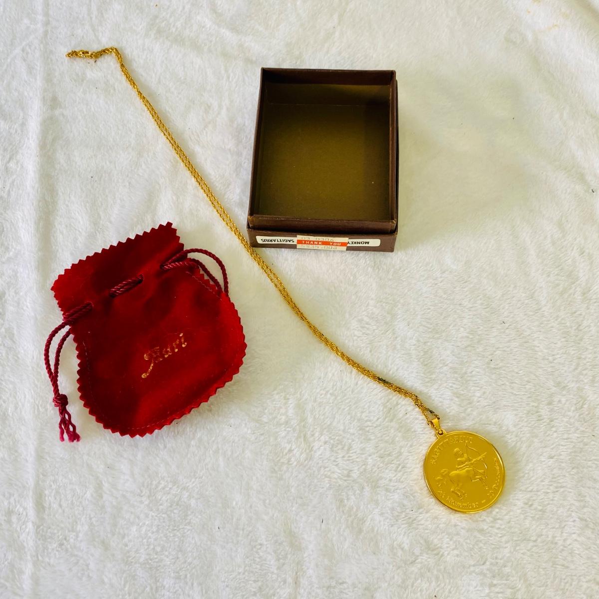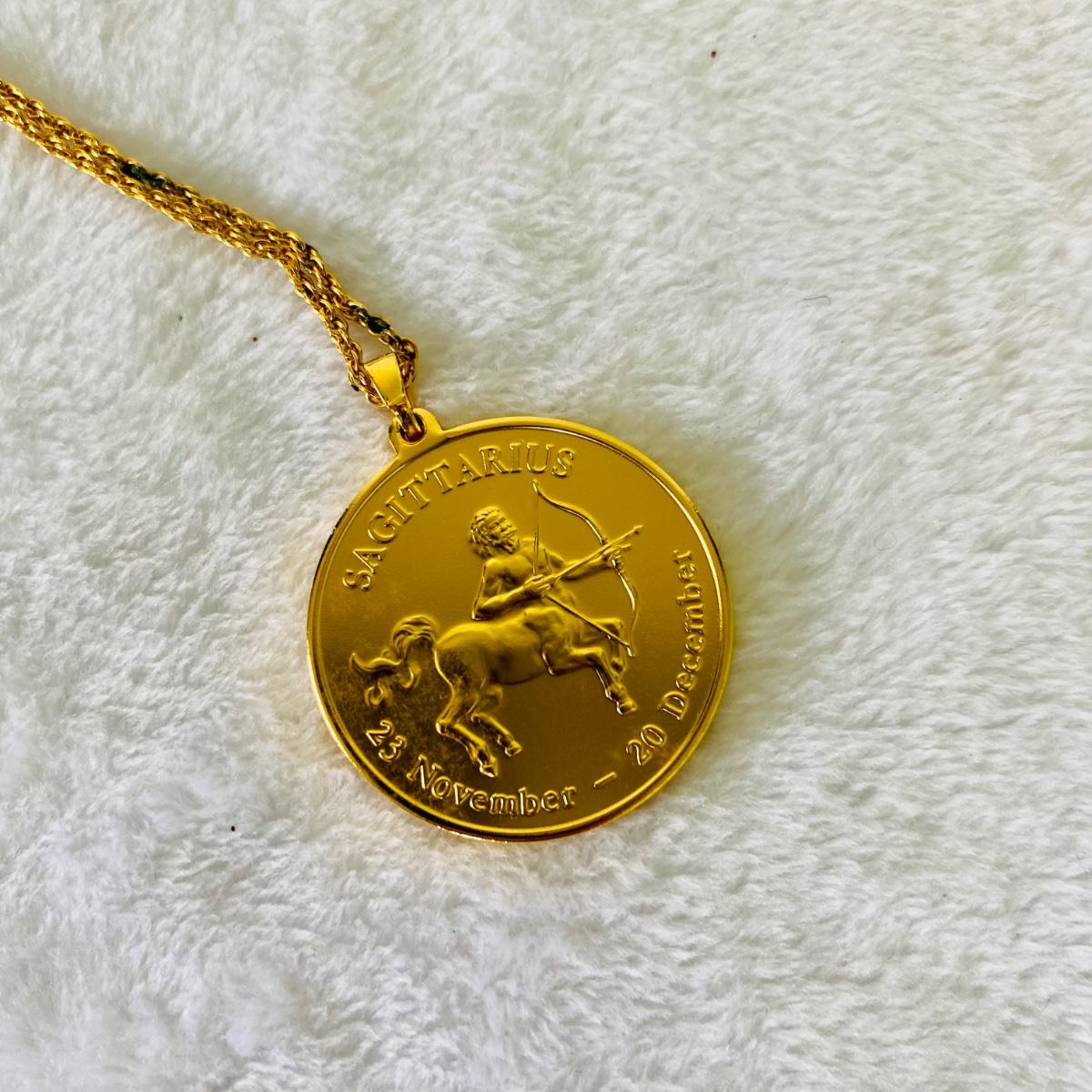 Year of The Monkey - Sagittarius zodiac medallion gold necklace. 12”L chain. Medallion is 1”D.