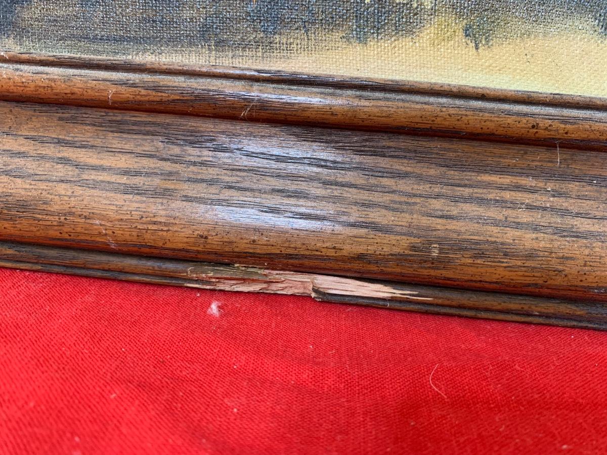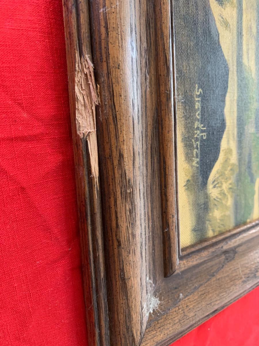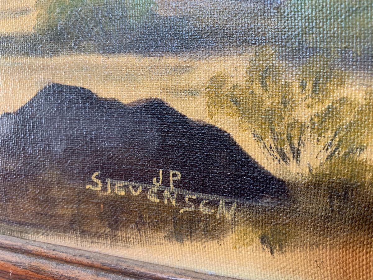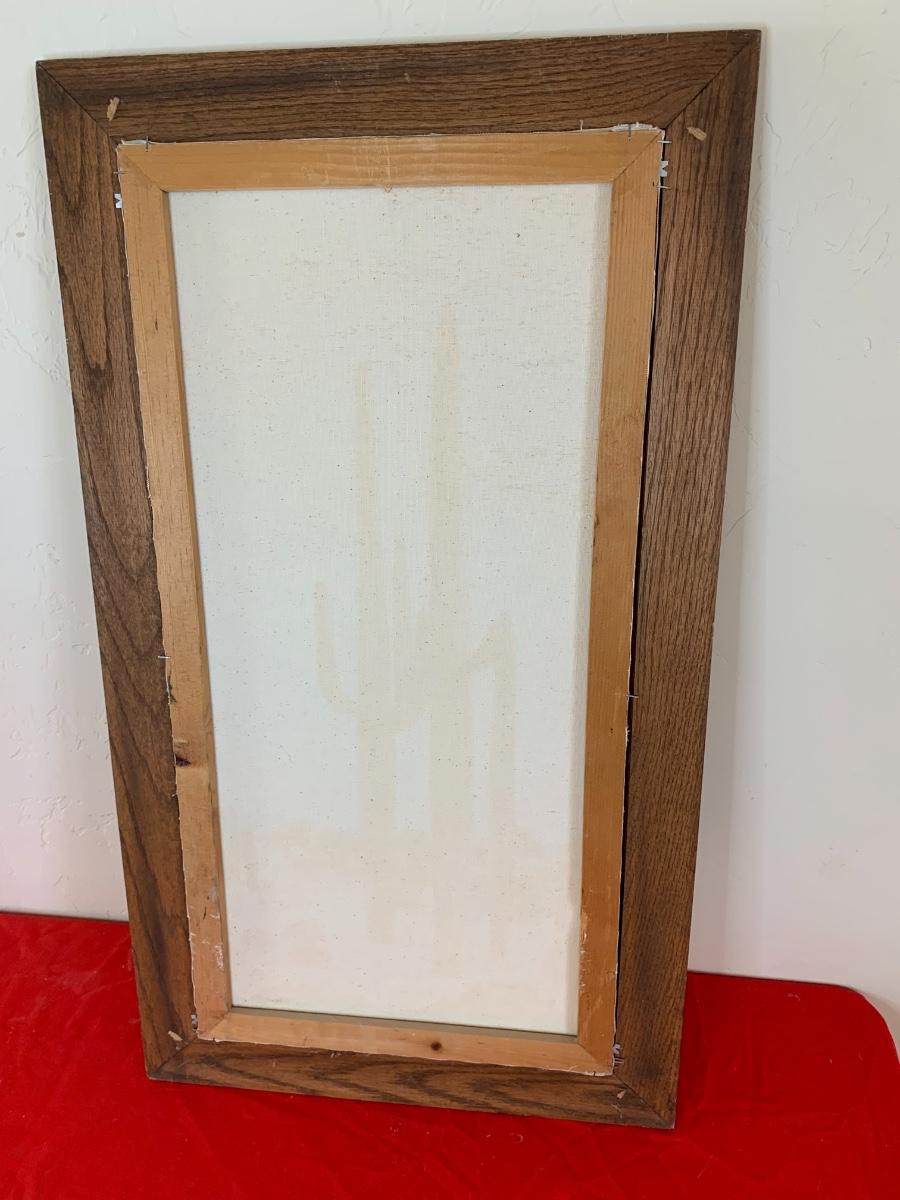 Gorgeous vintage acrylic saguaro painting by JP Stevenson in a wood frame with damage to the bottom right *pictured*