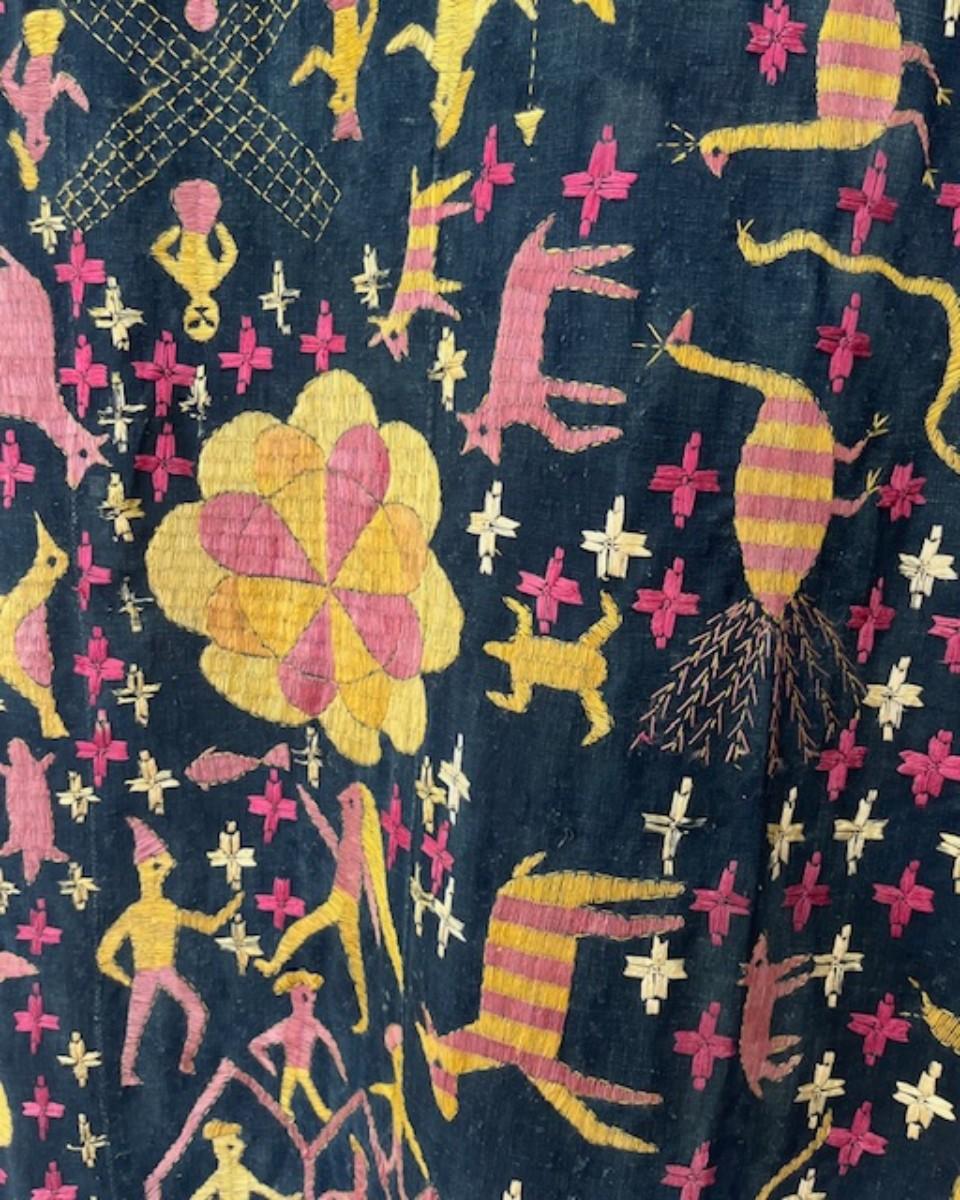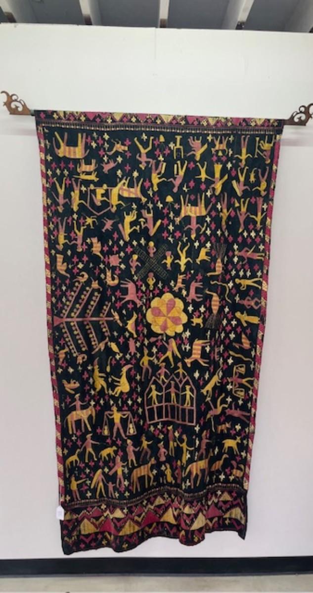 large Sainchi-Phulkari tapestry with decorative rod. 87 x 50
