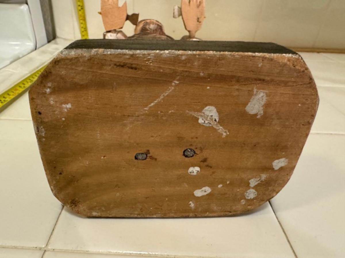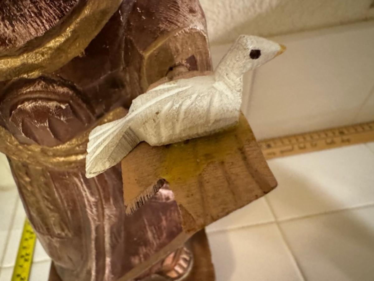 Carved in wood. as is hand and birds, see pics 15.5" tall