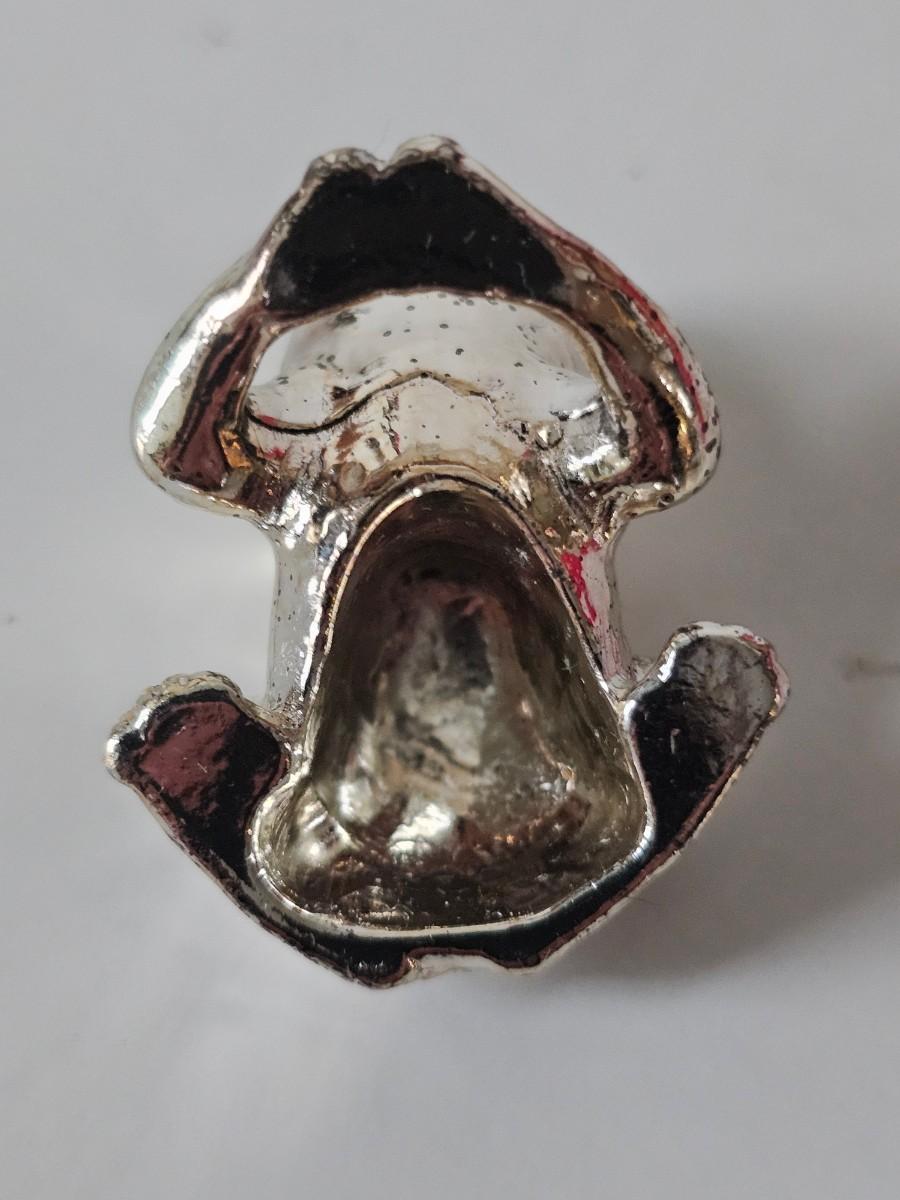 1980’s Paris Saint Hilaire Marque Place Party Menu Card Holders Silver Plated Seated Frogs with Open Mouth for Card Placement Original Box, silver