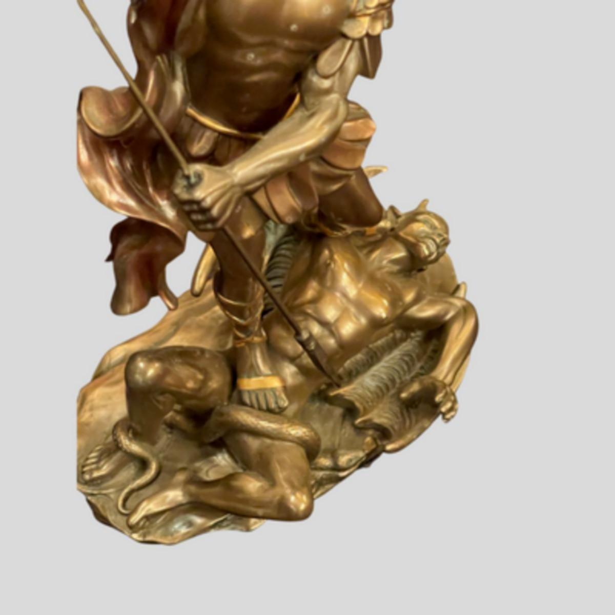 Saint Michael Victory over Lucifer Satan Devil Serpent Bronze Patina Statue - 11"