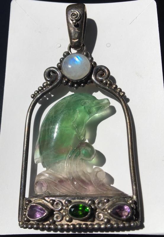 Sajen 925 Sterling with Jade Dolphin and Gems