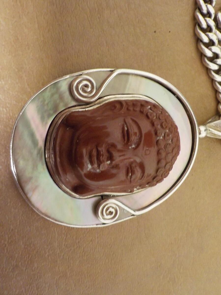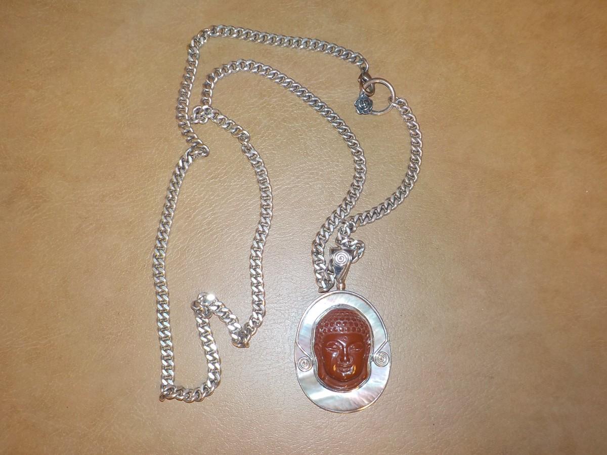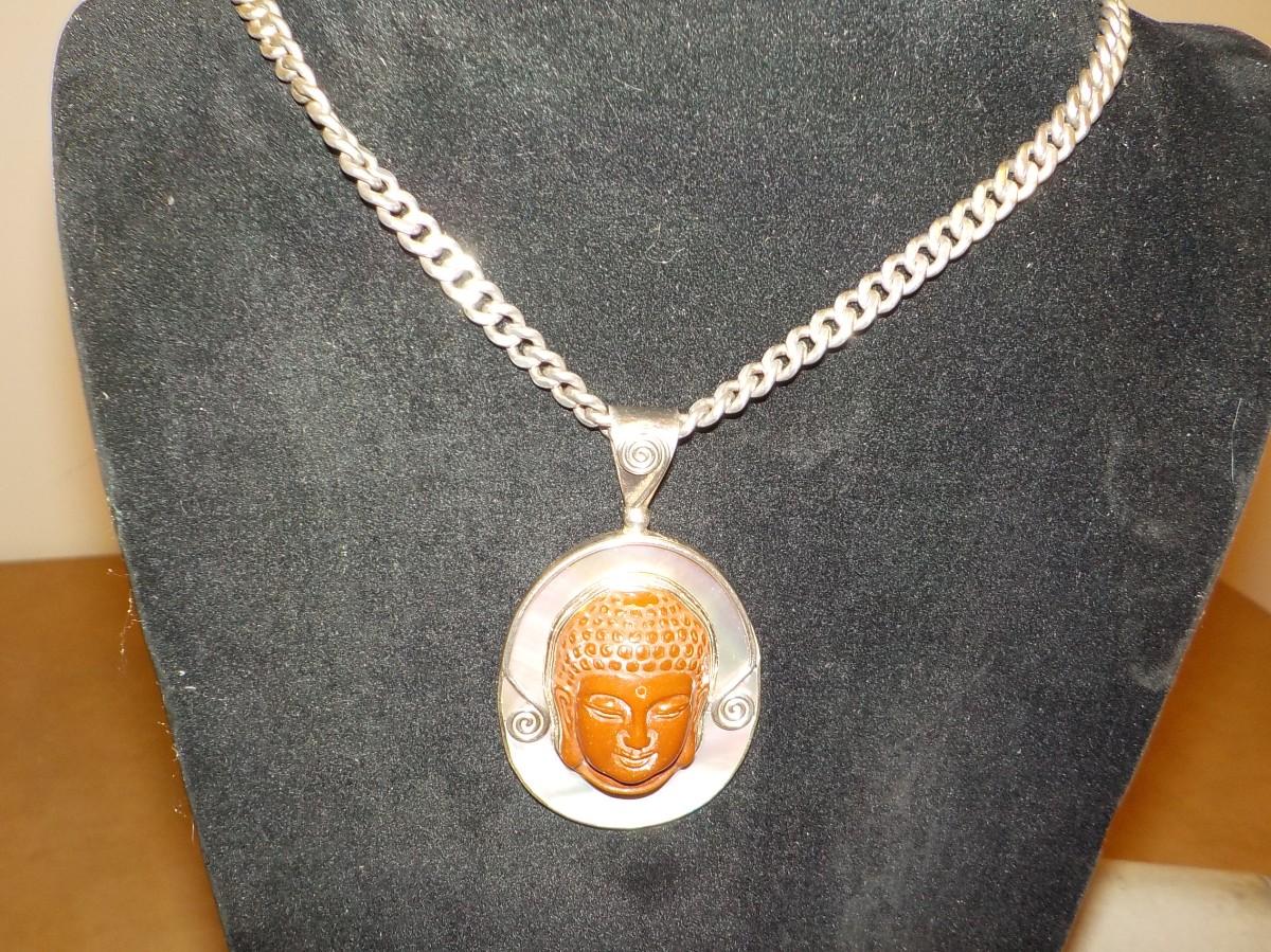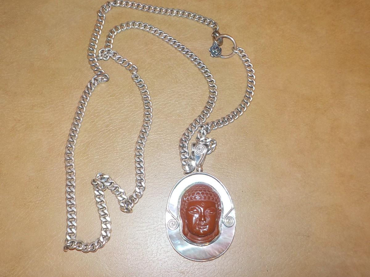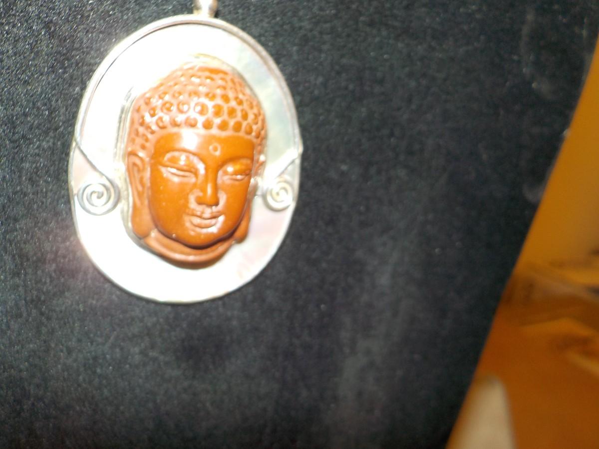 Beautiful and large 2.5 in. main piece, hand carved stone. Marked.