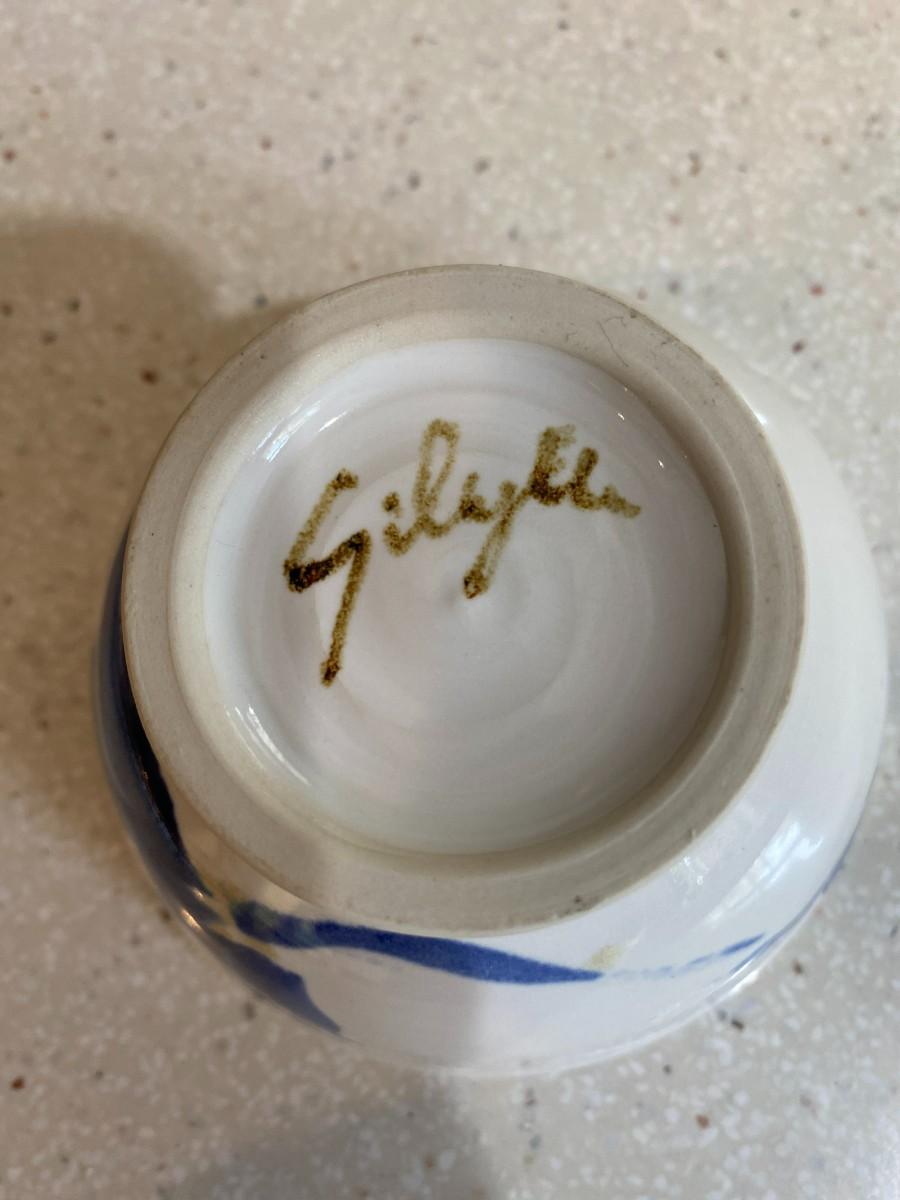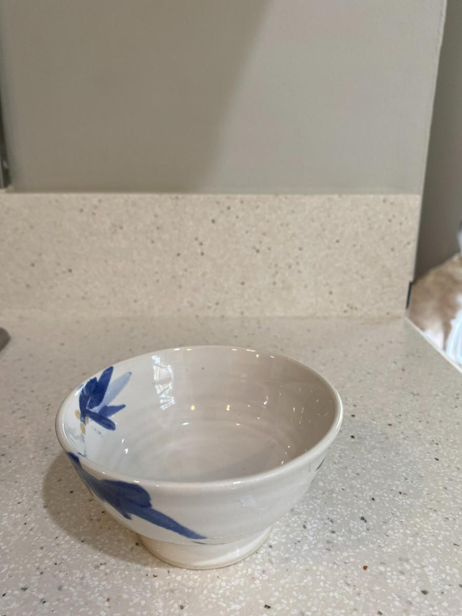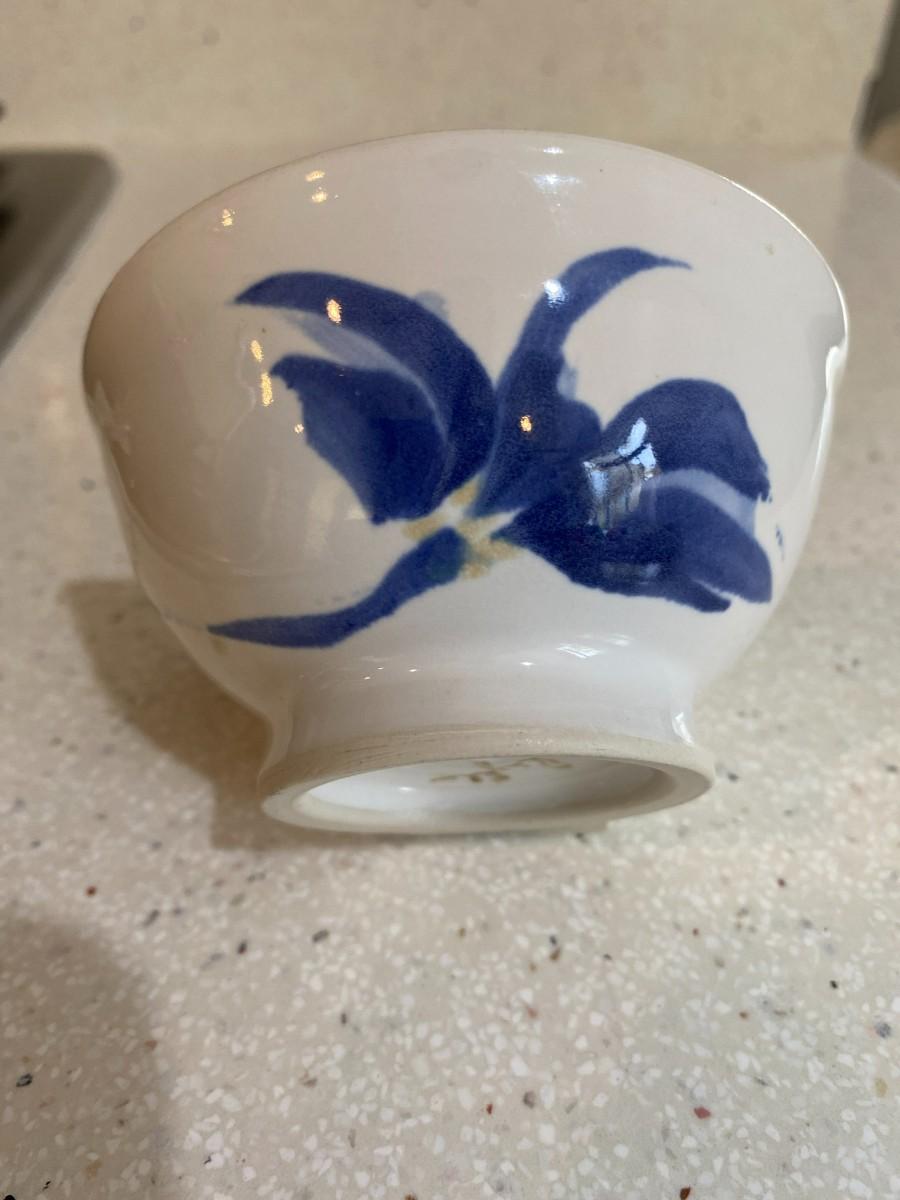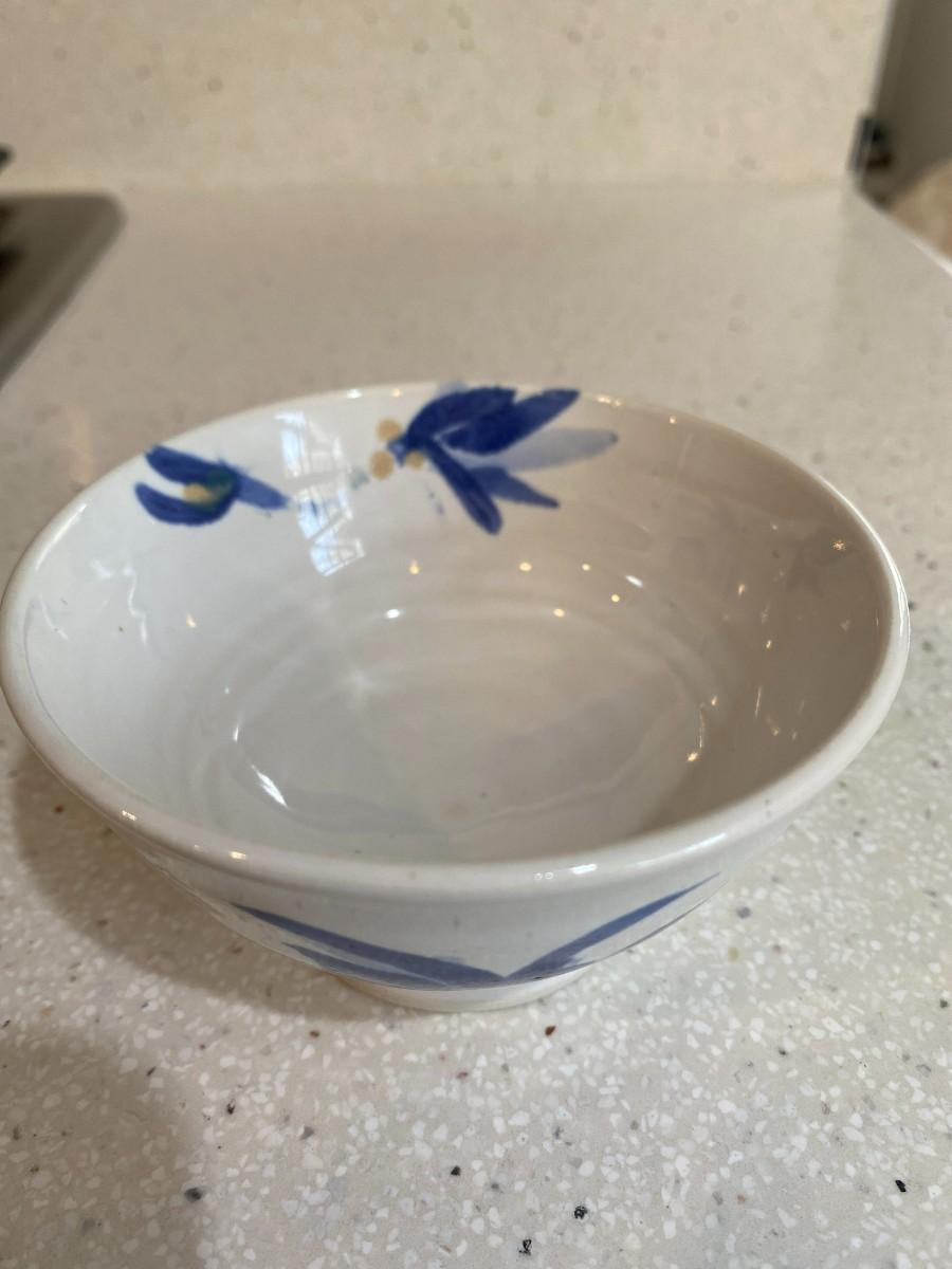 Ceramic white with blue floral print. Vintage. 4W x 2H